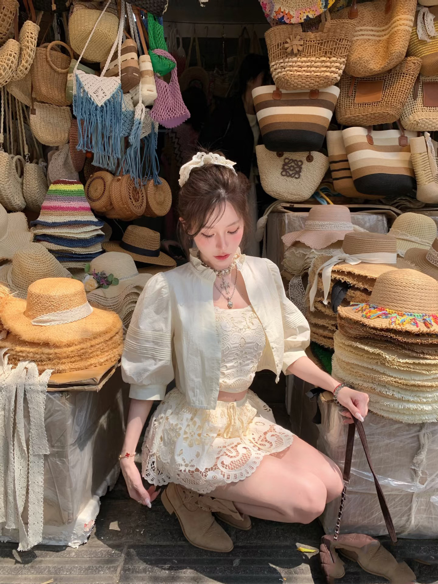 And Summer 2025 New Seaside Holiday Wind Small Comfortable South French Holiday Style White Short Shirt Shorts Set