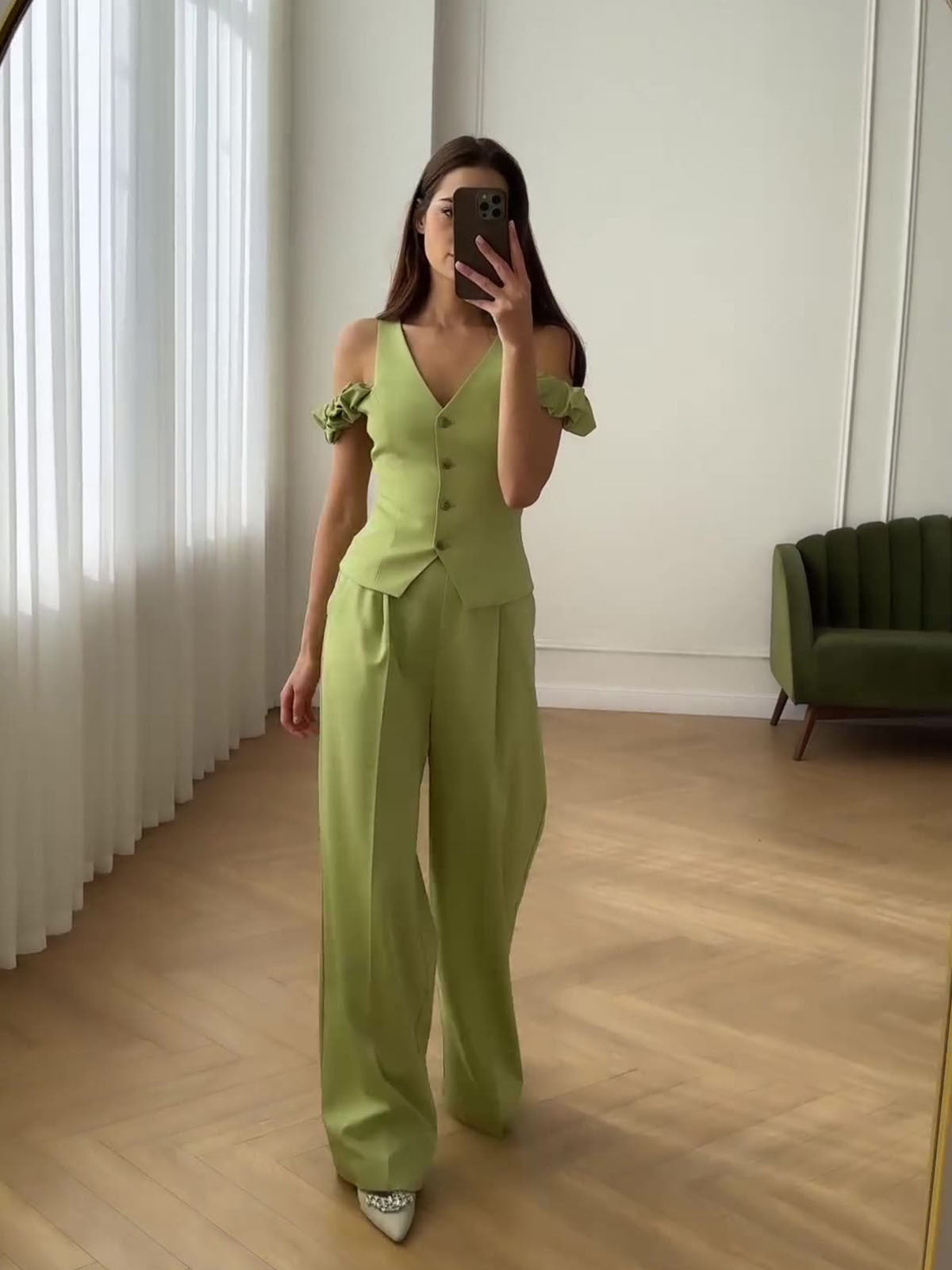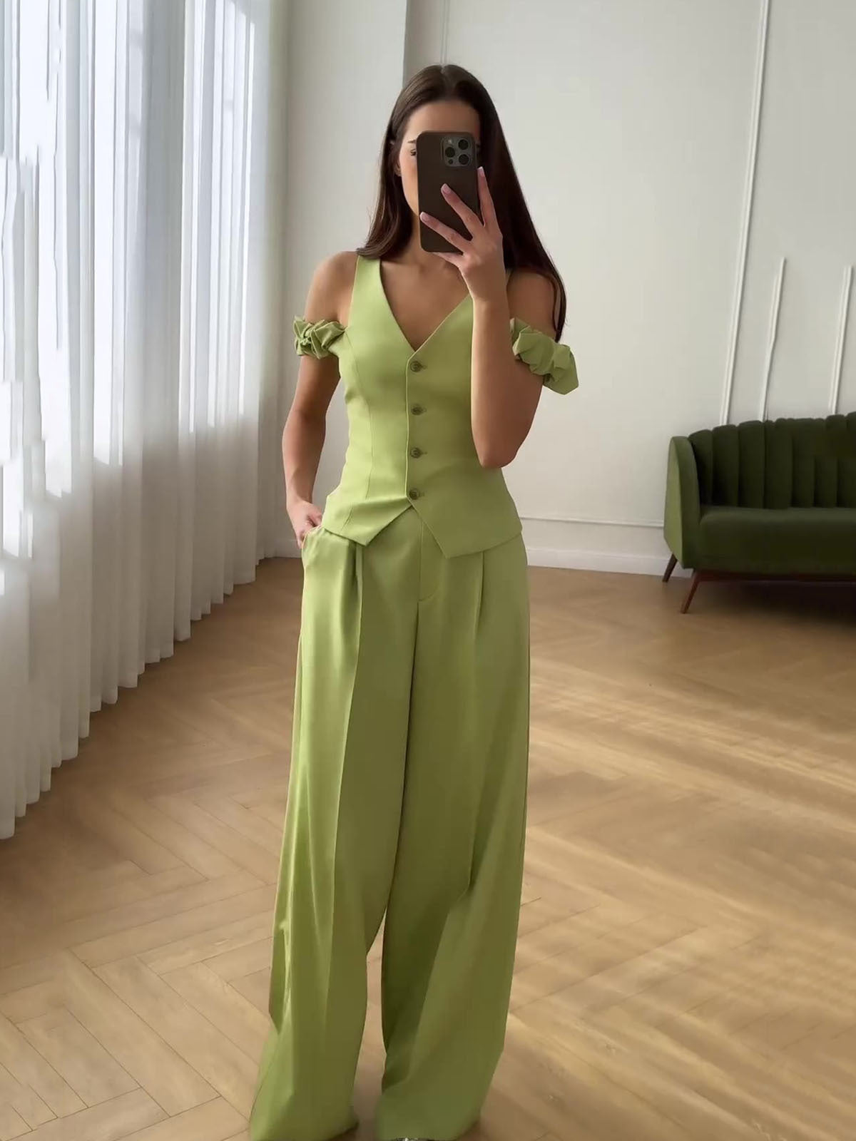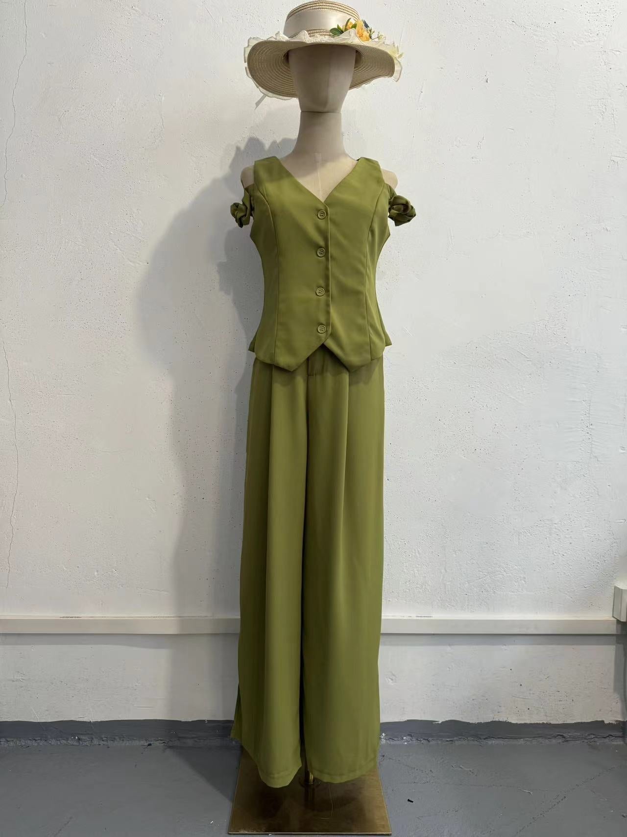 2024 Women's Commuting High-Waist Trend Solid Color Short-Sleeved Leisure Two Sets Of Women