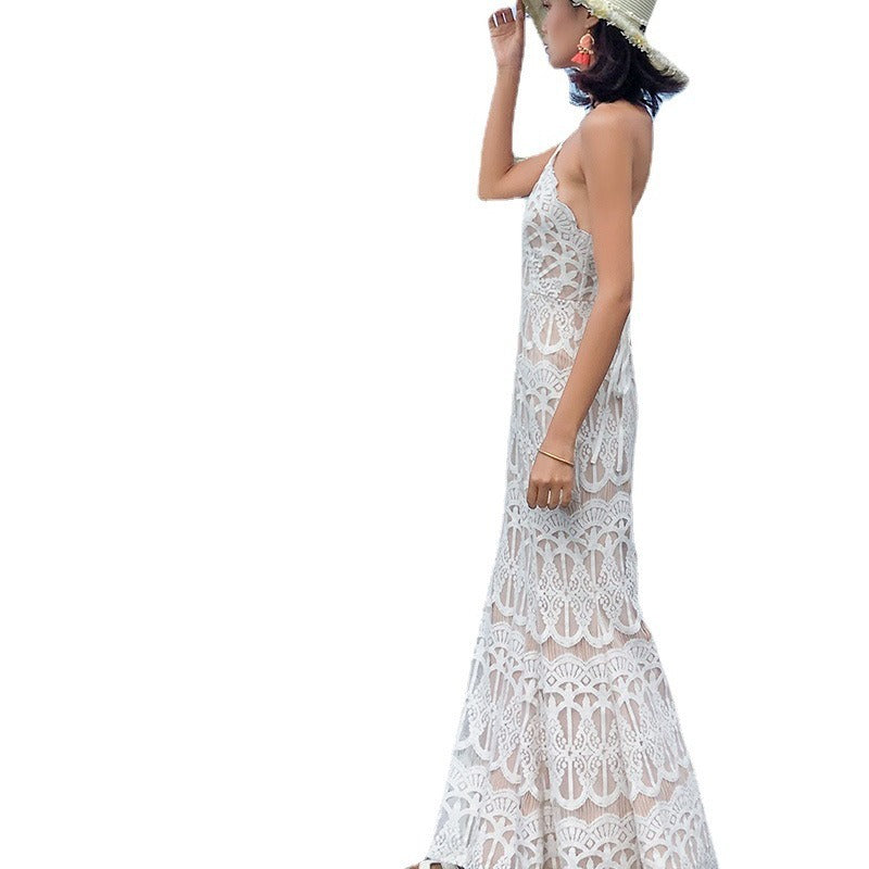 Beach Dress Seaside Resort Dress Skinny Fishtail Dress Sexy Bare Back Sling Lace Dress
