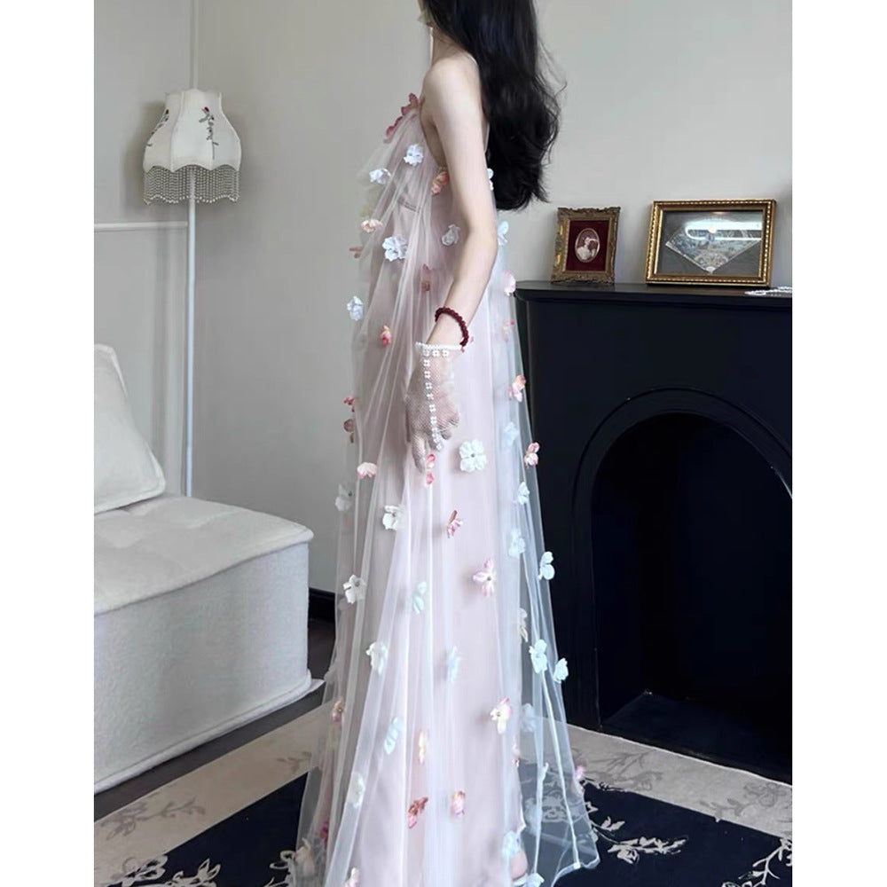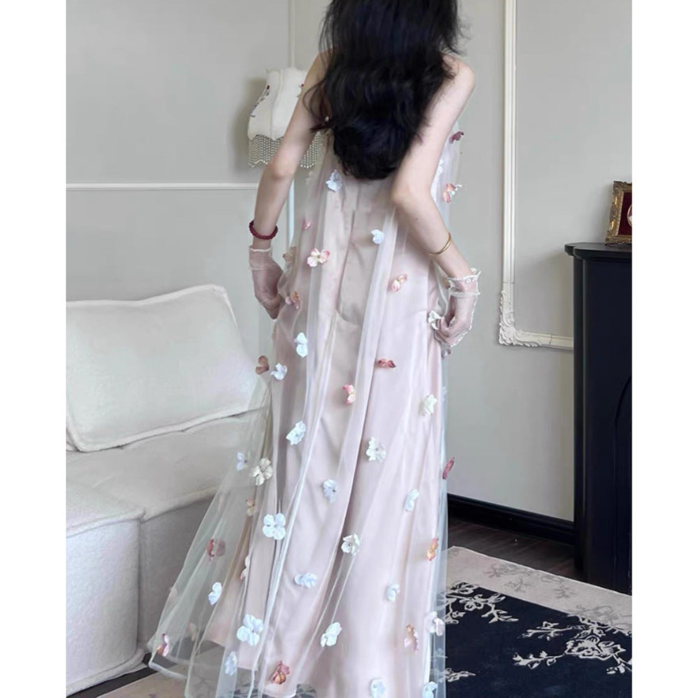 Beauty Three-Dimensional Flower Mesh Dress 2025 New Teen Temperament Sling Dress