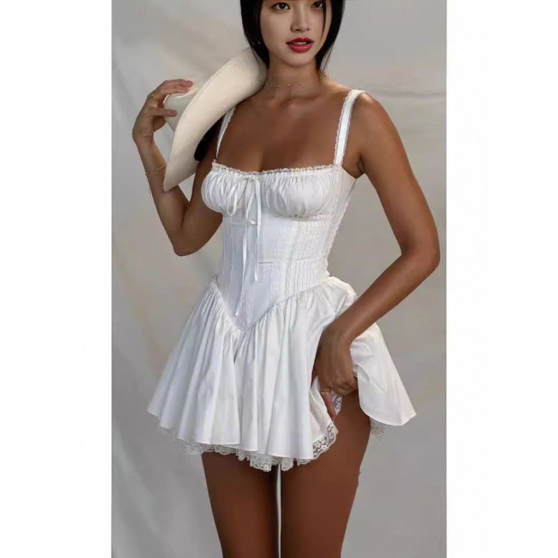 Fish Bone Sling Dress Summer Ballet Dopamine Wearing Sweet Waist Small White Dress