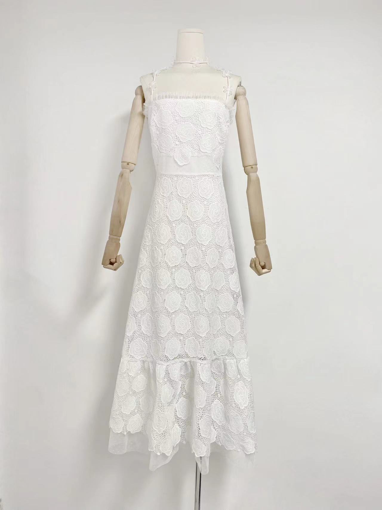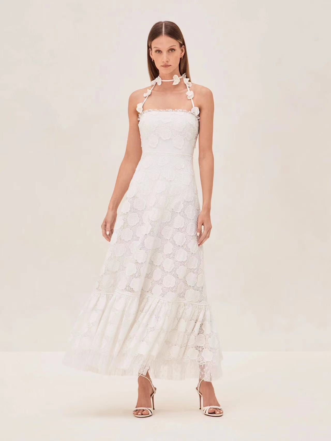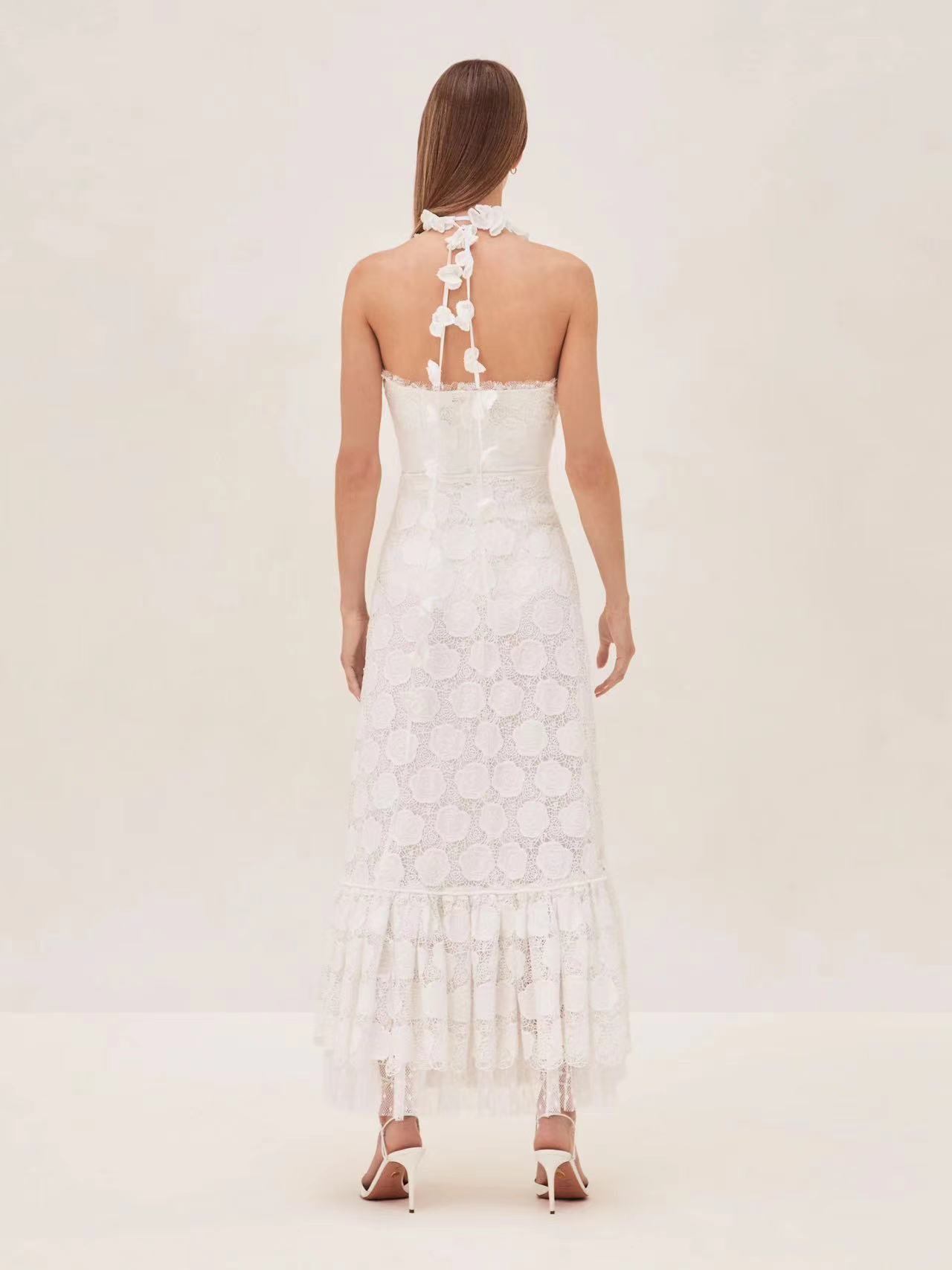 Niche 2024 Summer New Hanging Neck Design Hand Nail Flower Thoracic Hollow Long Dress Woman