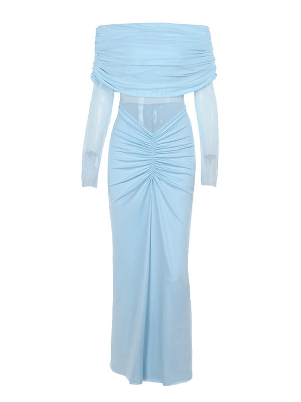Off Shoulder Mesh Splicing Cascading Ruffle Bodycon Going Out Gowns Photoshoot Maternity Maxi Dress Maternity