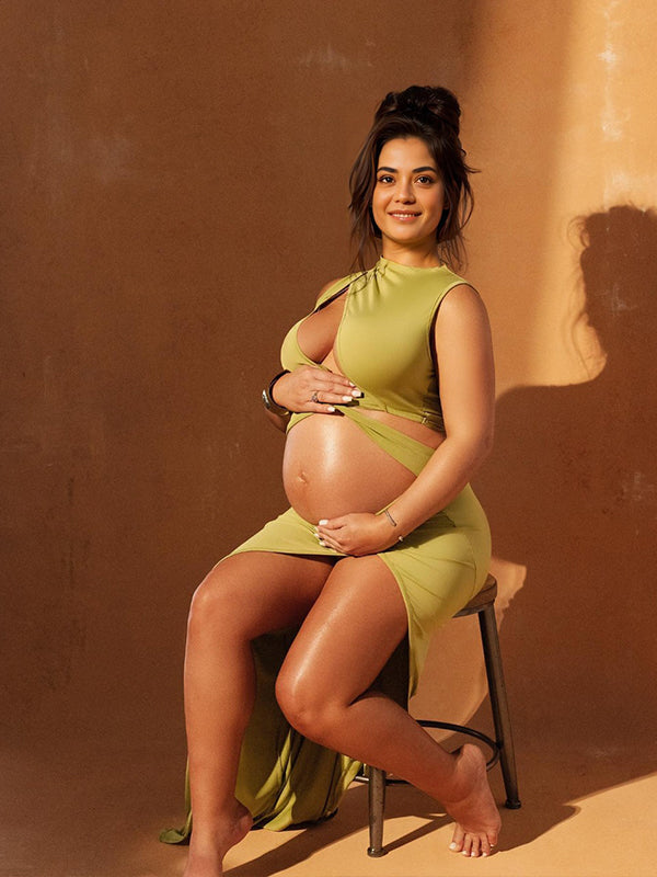 Olive Cut Out Irregular Split Ruffle Side Slit Bodycon Chic Photoshoot Maternity Maxi Dress Maternity