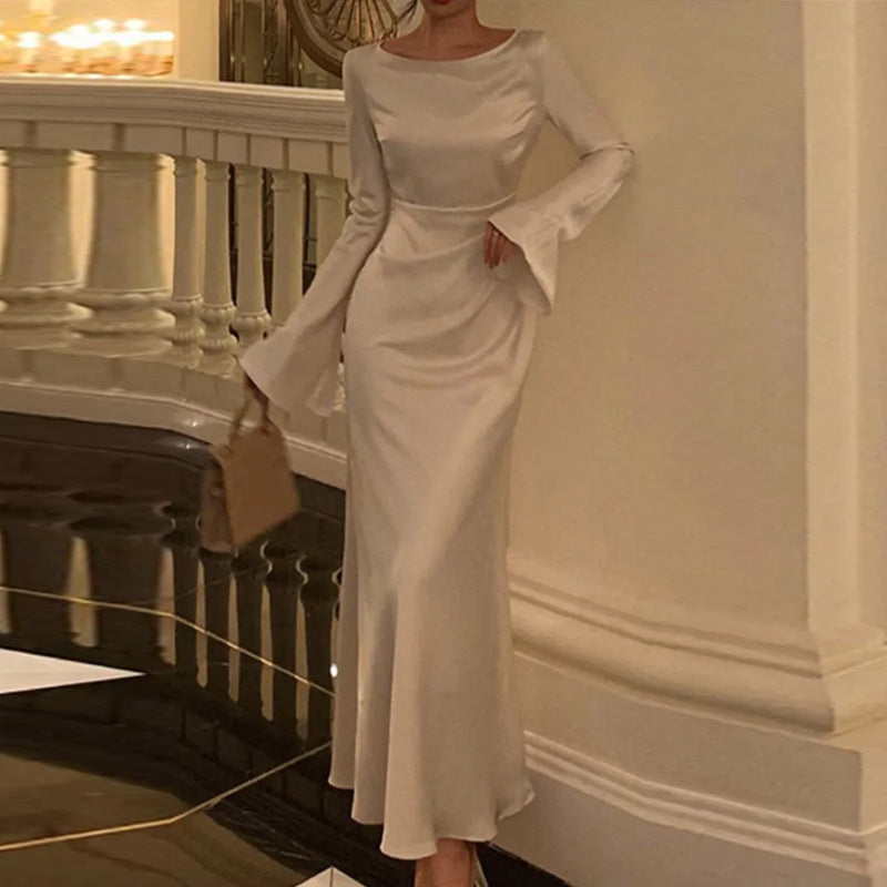 Women's Summer New Elegant Commute Pure Long Sleeve Fashion Dress DJPT