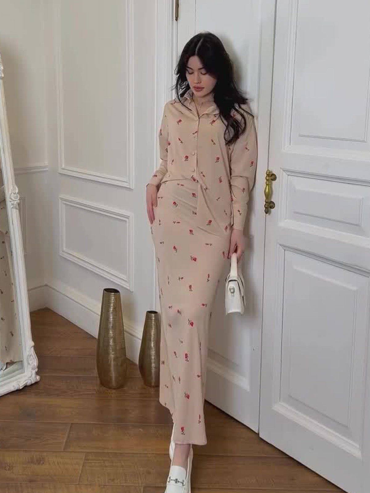 2024 Women's Two Sets Of Breathable Casual Collar Flower Print Dress
