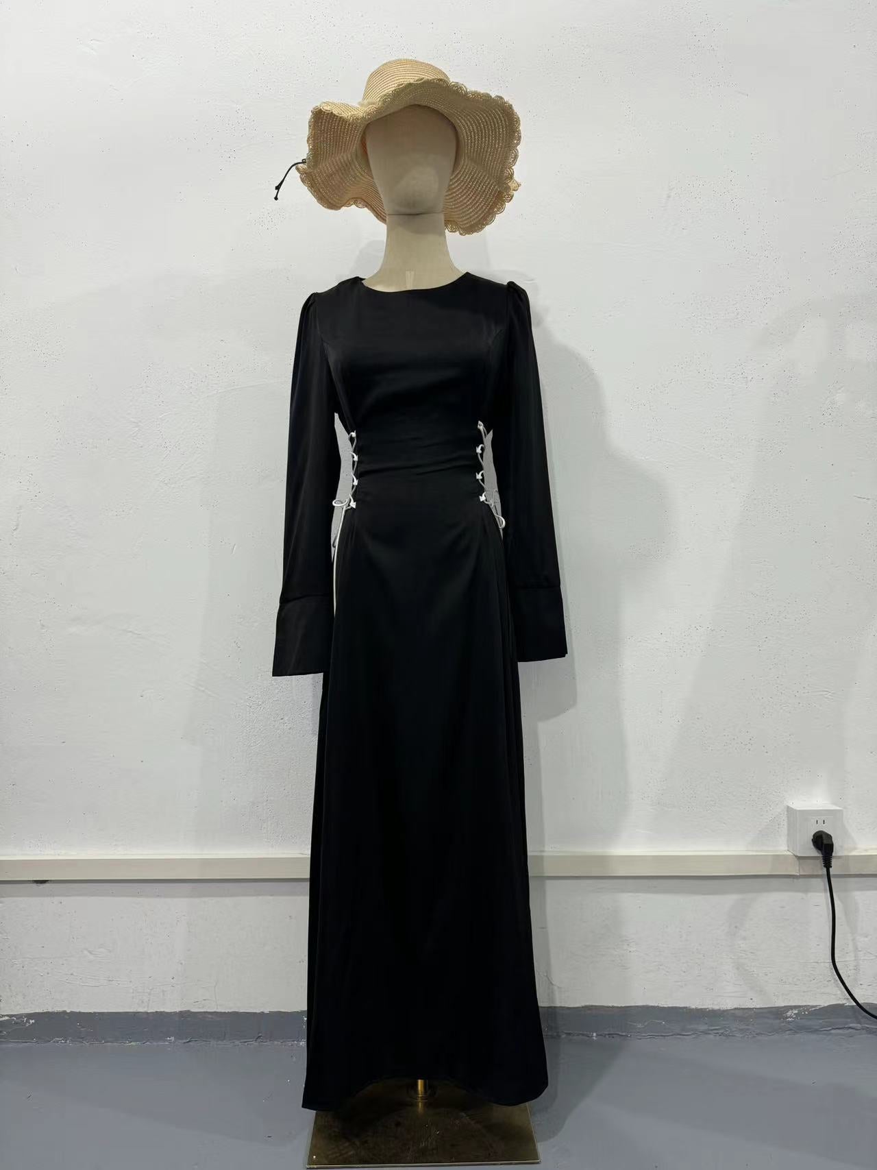 2025 Autumn New Horn Sleeve Strap Design Long Sleeves To Close The Waist Collar Dress Woman