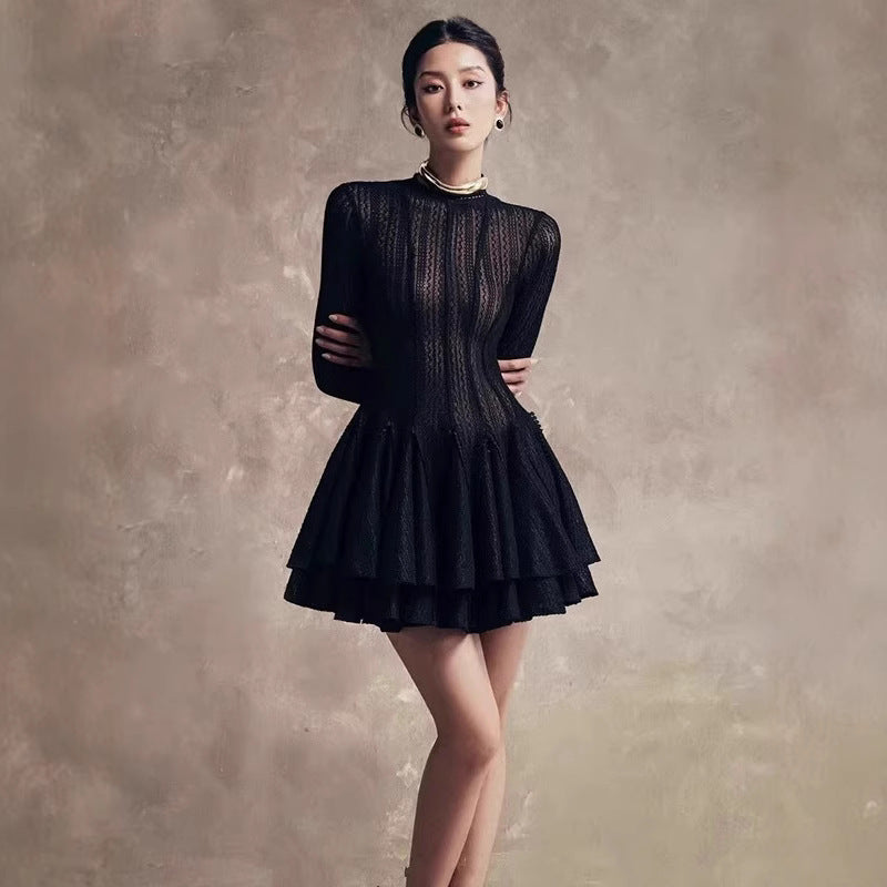 2025 Black Rolled Long Sleeve Dress Women's Puff