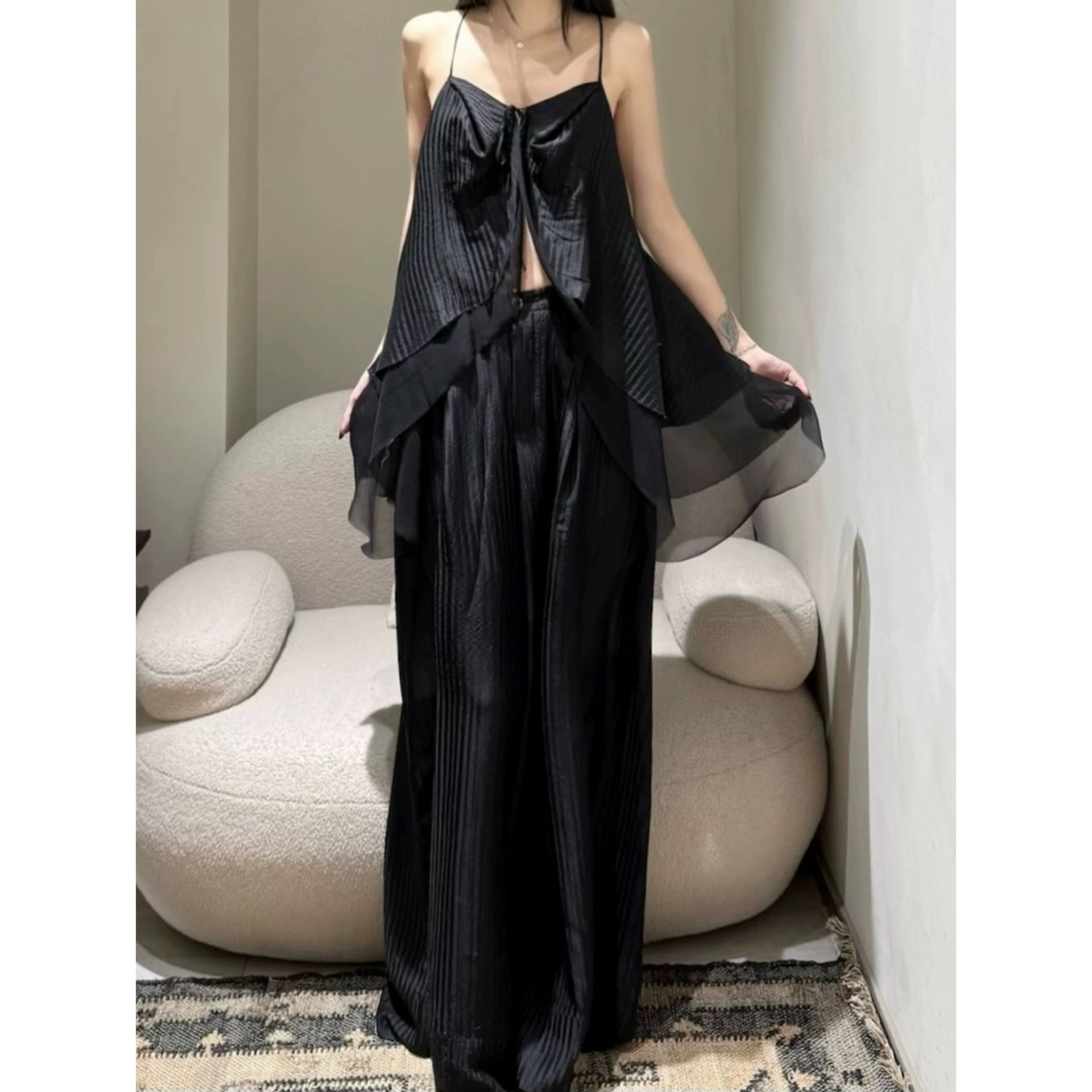 2025 New French Heavy Industry Press Folding Sling Vest Women High Waist Lace Skirt Suit