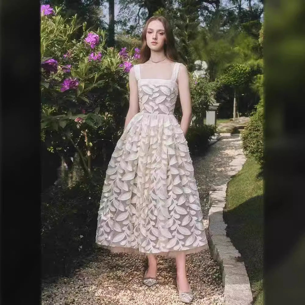 2025 Three-Dimensional Leaf Embroidery Dress 2024 Sling Dress Skirt