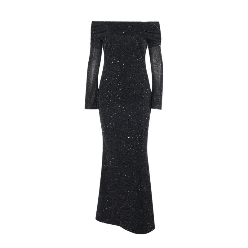 Autumn 2025 New Sexy Dress Temperament Body-Slid One-Word Shoulder Dress Woman DJPT