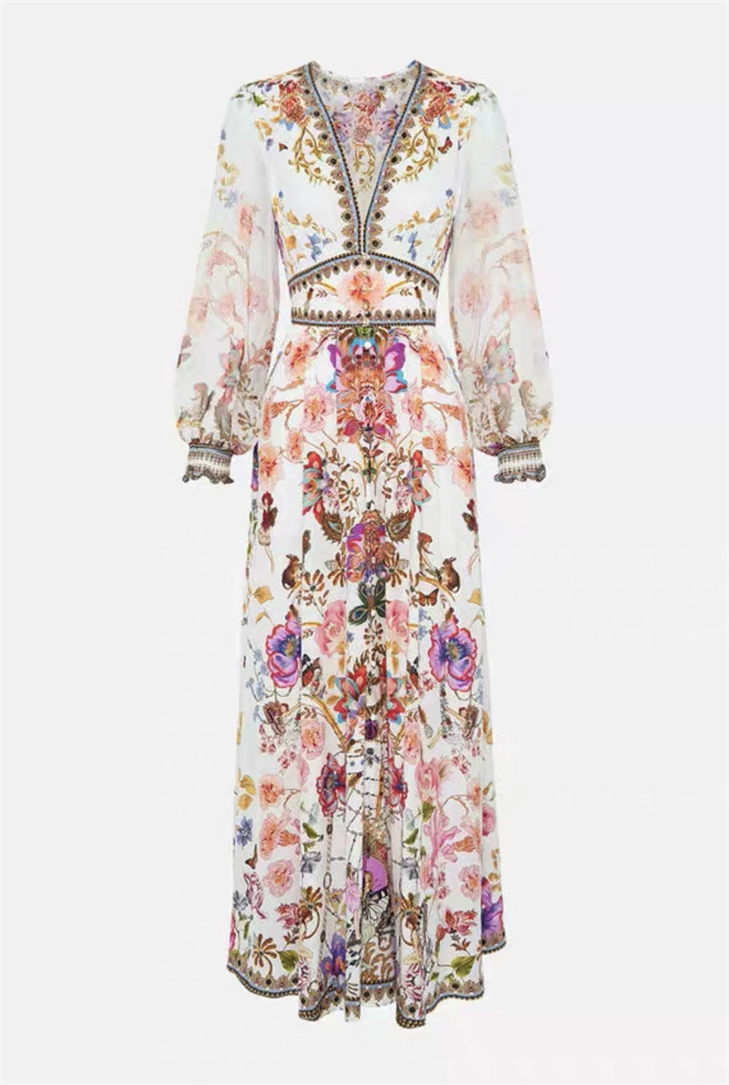 Autumn Australian Tide Brand CML Elegant Temperament Print V Received Waist Thin And Flowing Dress Dress Woman