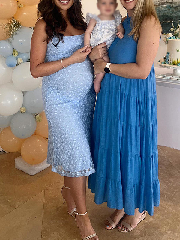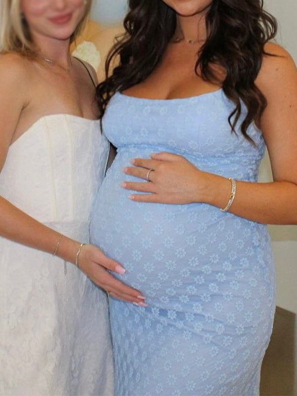 Blue Spaghetti Strap Bodycon Mermaid Backless Baby Shower Maternity Maxi Dress Maternity