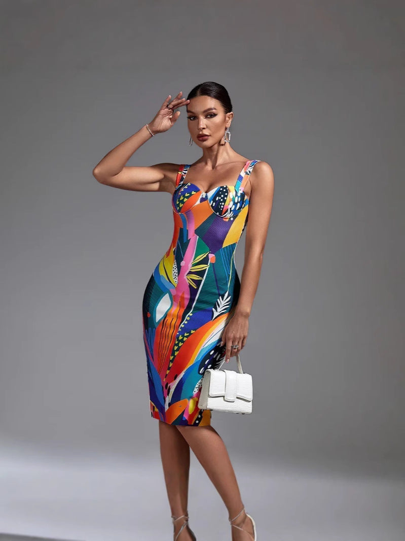 Body Print Sexy Slings With Thin Ass Dress Spice Girls High-Sensing Women's Temperament Dress