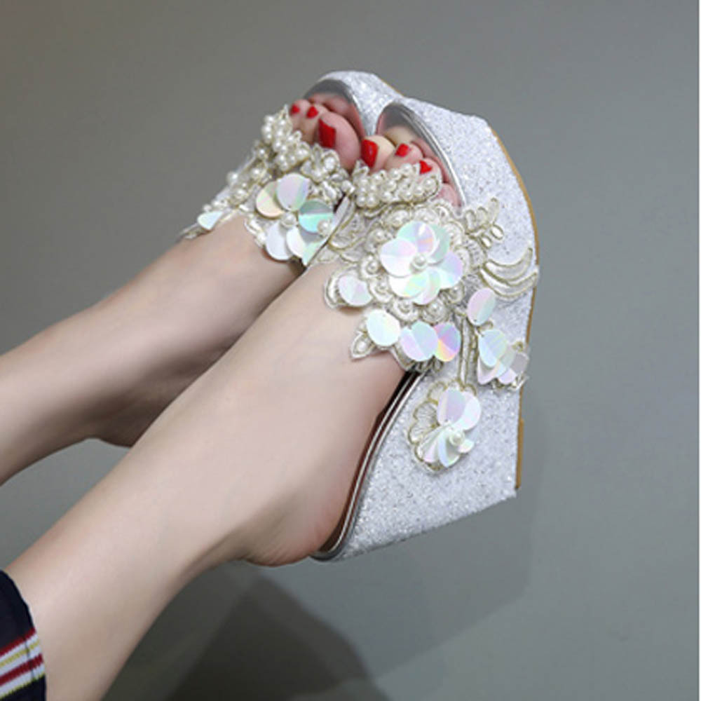 Cool Slippers Shop Hundred Korean Version Of Fashion Beaded Flowers Summer Transparent Slope And Thick Bottom Slippers High Quality Shoes