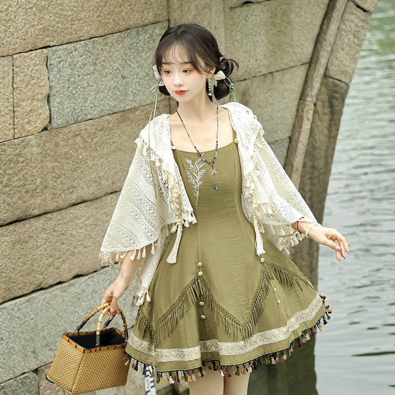 Design Cicdas Chinese Style Improvement Han Element Women's Shawl Sling Skirt Set 9132