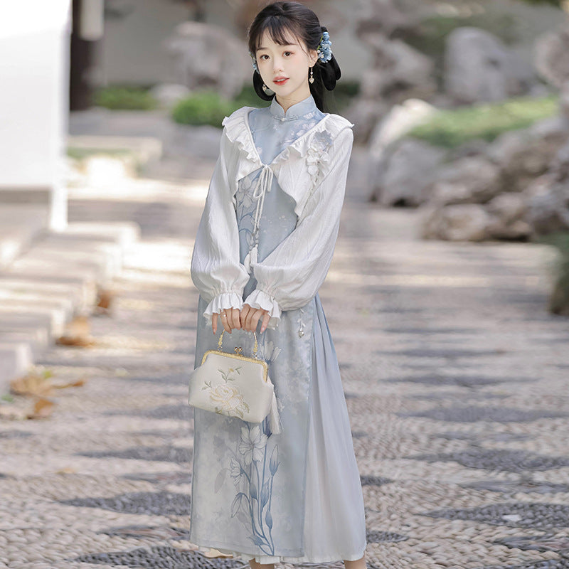 Design Frosting Chinese Wind Improvement Chinese Elements Cheongsam Half Skirt Set 8908