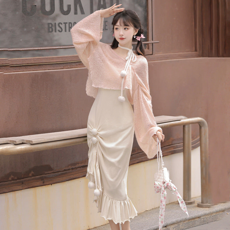 Design Gentle Autumn Chinese Style Improvement Han Elements Women's Coat Sling Skirt Suit 6934