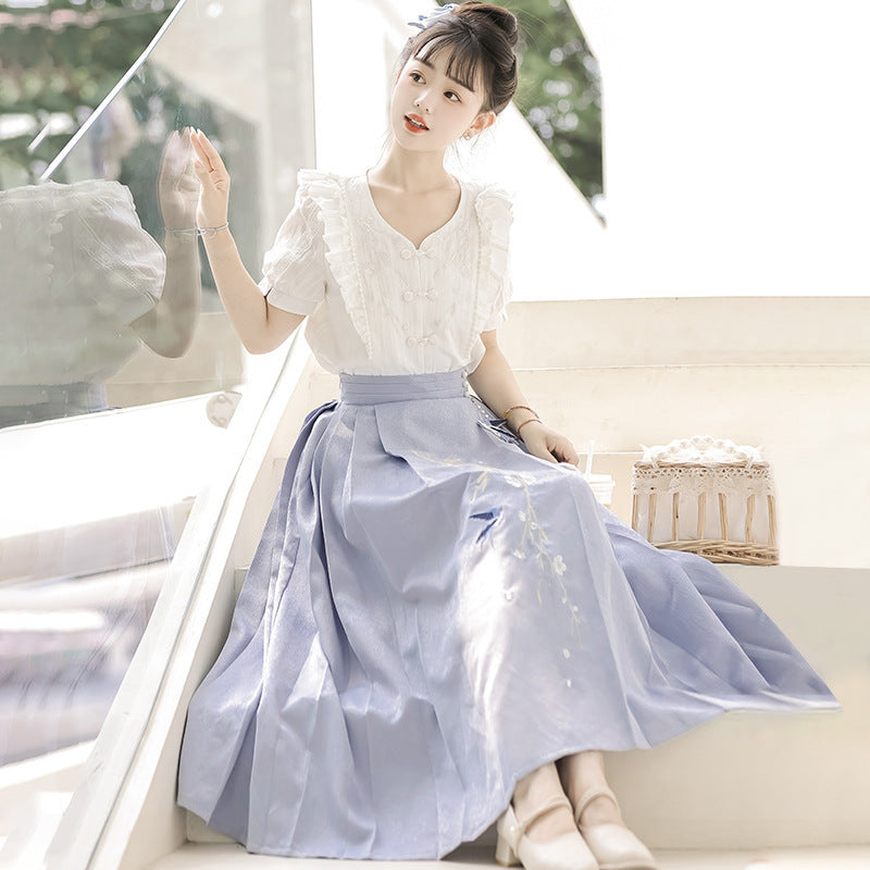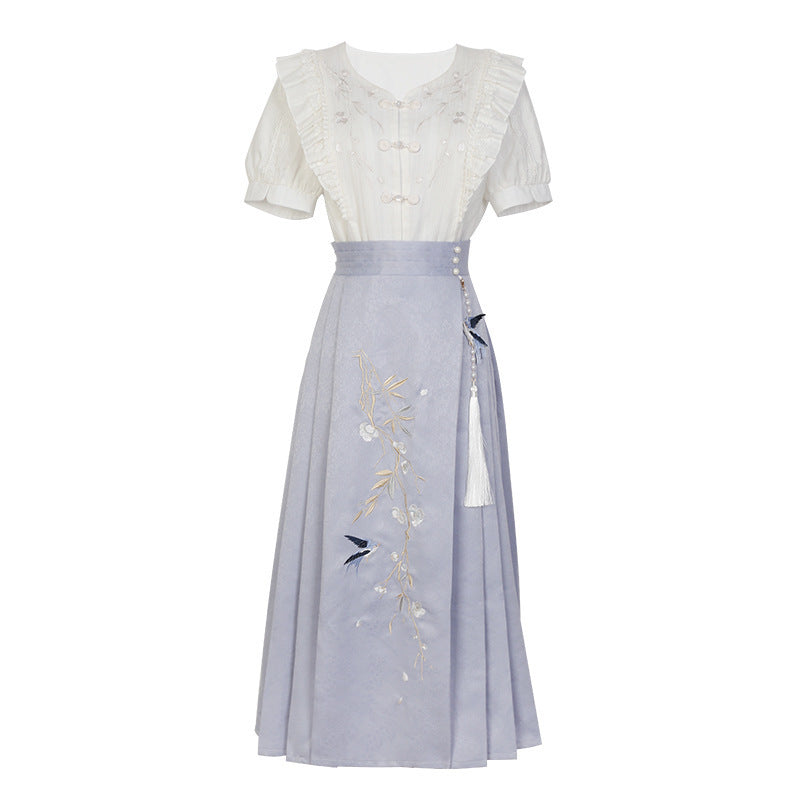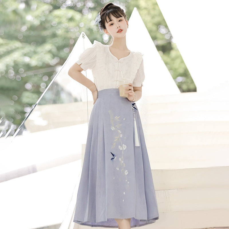 Design Jade Words Hanfu Women Chinese Style Daily Improvement Han Element Half Dress Set 6804