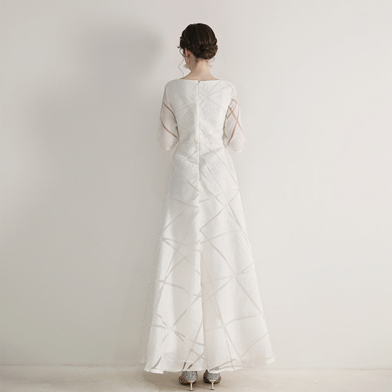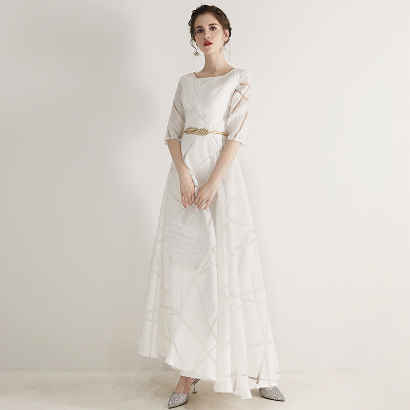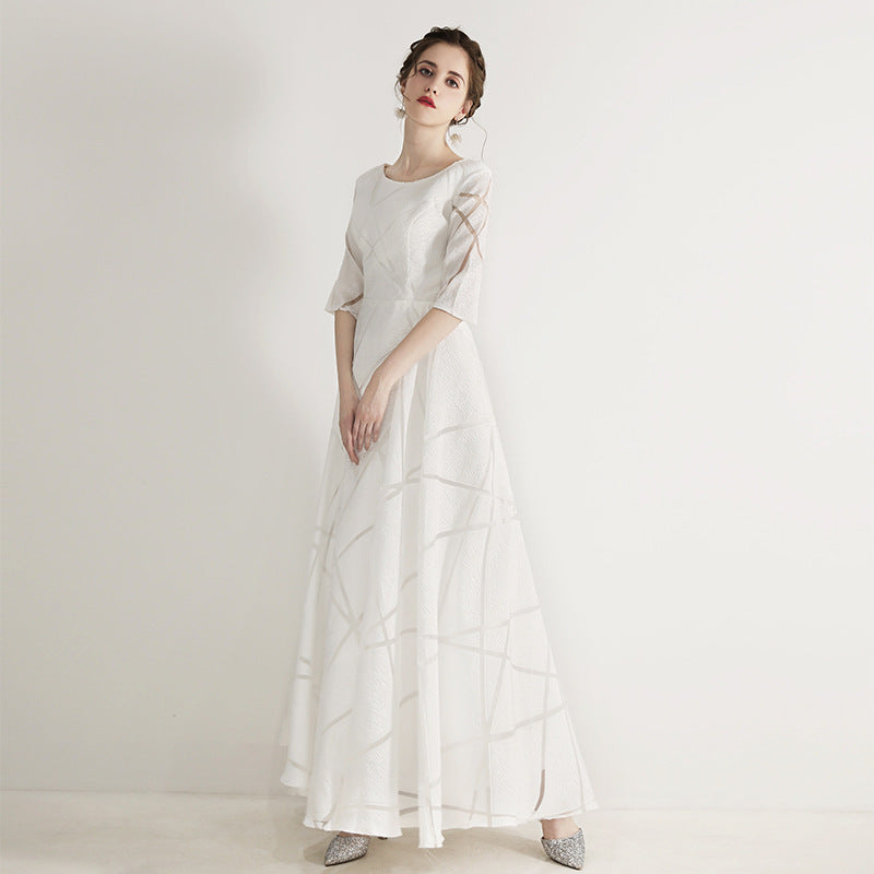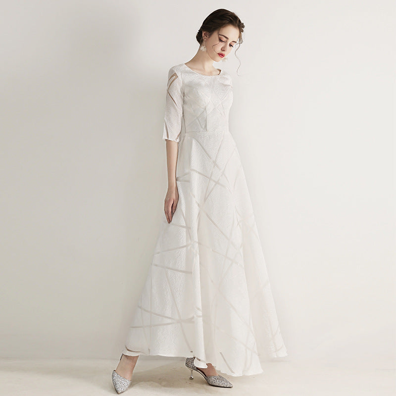 Dress 2025 New White Fashion Long Slim Slim Elegant Banquet Host Fashion Dress