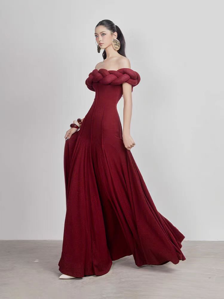 Dress 2025 Summer Vietnam Design Feeling Sesame Flowers Shoulder Thin Knitted Dress Dress
