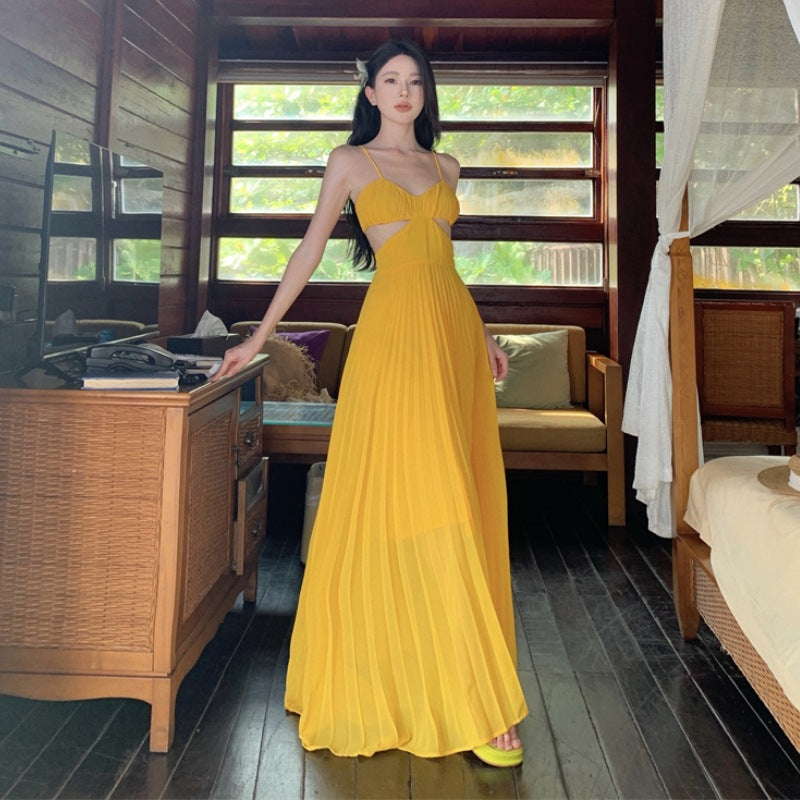 Dress Design Slenyi Empty Lumened Dress Women Summer Seaside Vacation Sling Dress