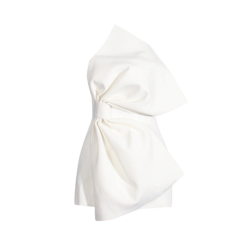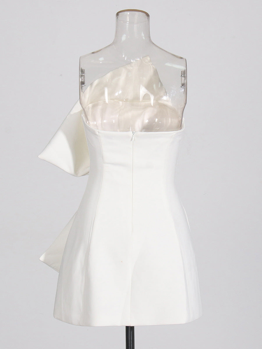 Dress Dress 2025 Summer New High-End Feel Bow Asymmetrical Decorative Bra Dress Dress Woman
