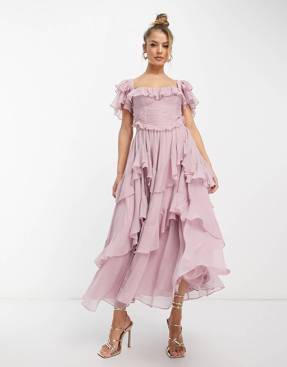 Dress Holiday Dress Lace Side Hollow Cake Dress Lotus Leaf Folding Long Dress