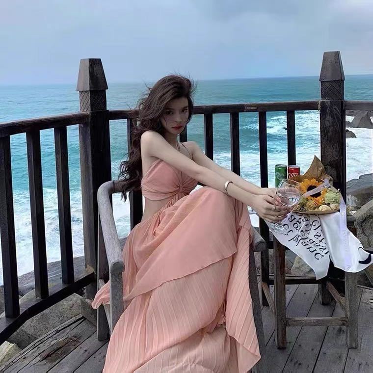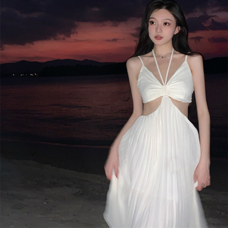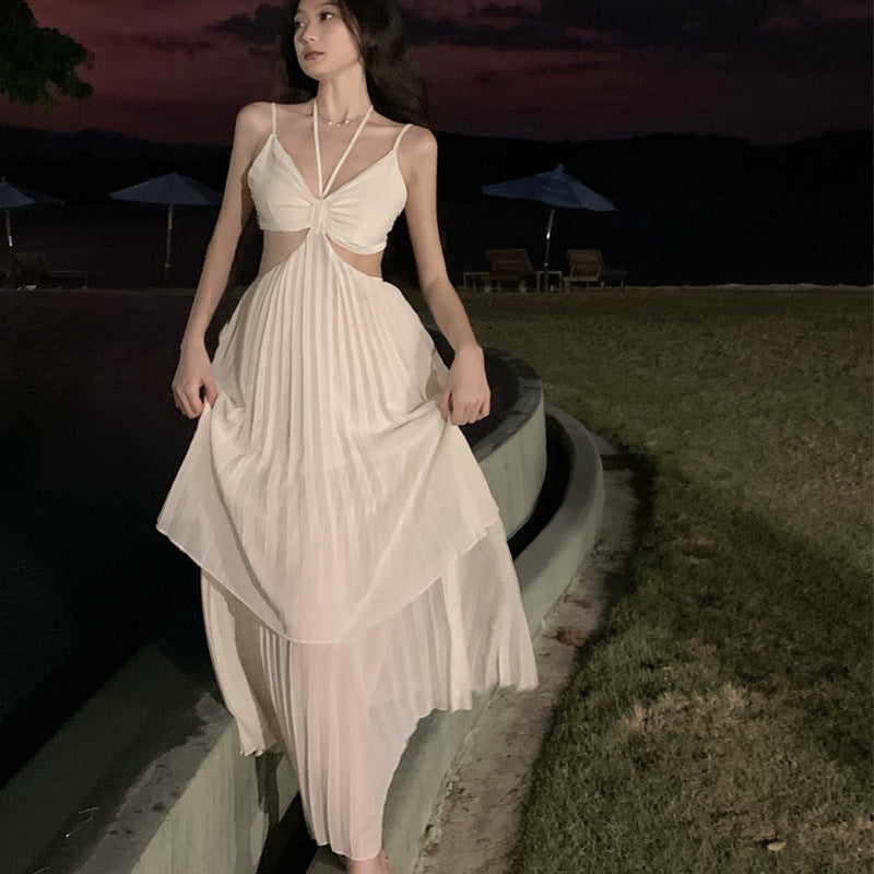 Dress Sexy Pure Desire Irregularly Exposed Waist Thin Sling Dress Design Feeling 100 Folded Dress Dress Dress Dress Woman