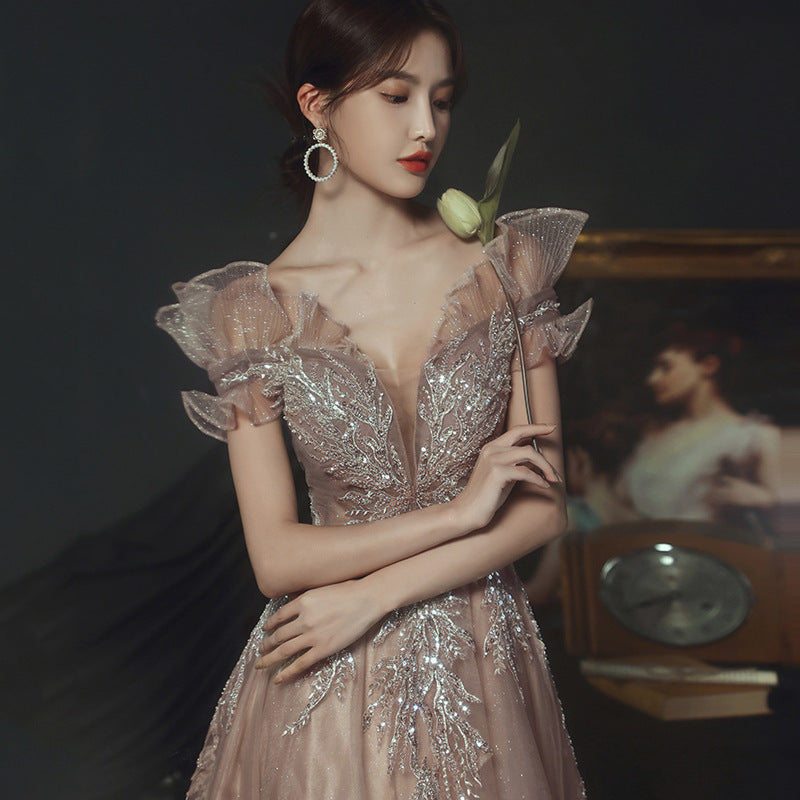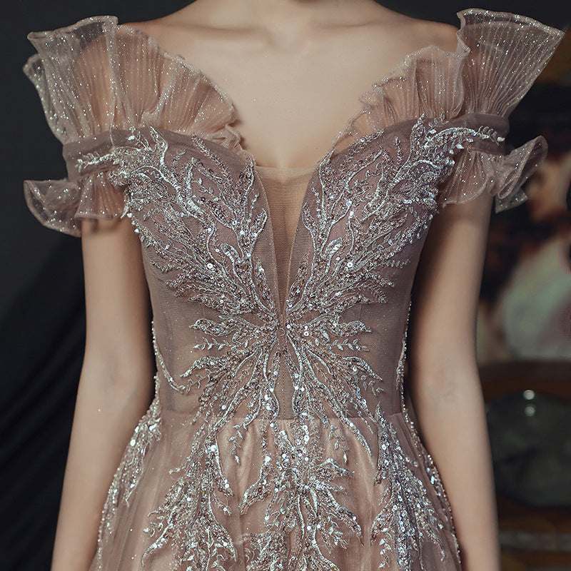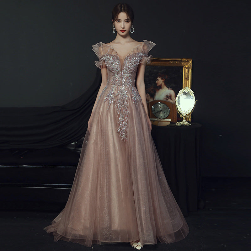Dress Woman 2025 New Summer Temperament Banquet Presided Over A Word Shoulder Name And Long Dress Dress Dress