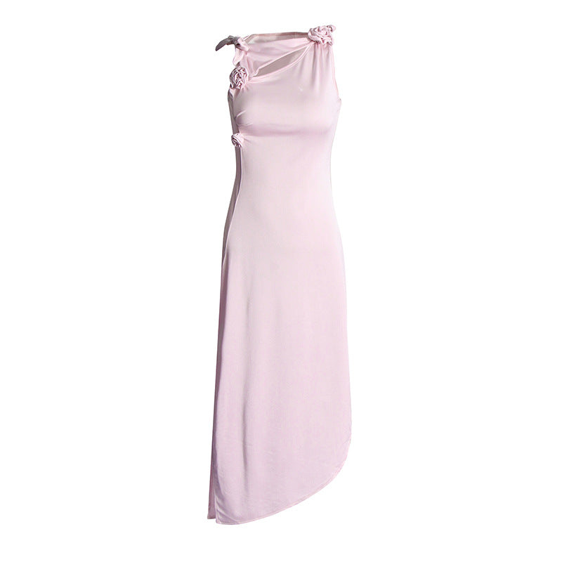 Dress Women's Dress Spring 2025 New Pink Sleeveless Bow Splicing Body Repair Long Dress