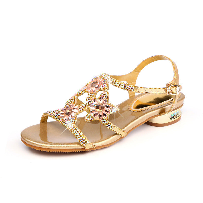 Drill Sandals Women 2025 New Summer High Heels In Leather Diamond High Heels Coarse Women's Sandals High Quality Shoes