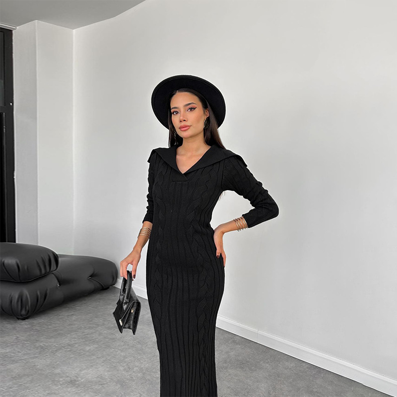 Fashion Knitted Solid Color In Autumn 2024 V-Neck Bag Hip Dress