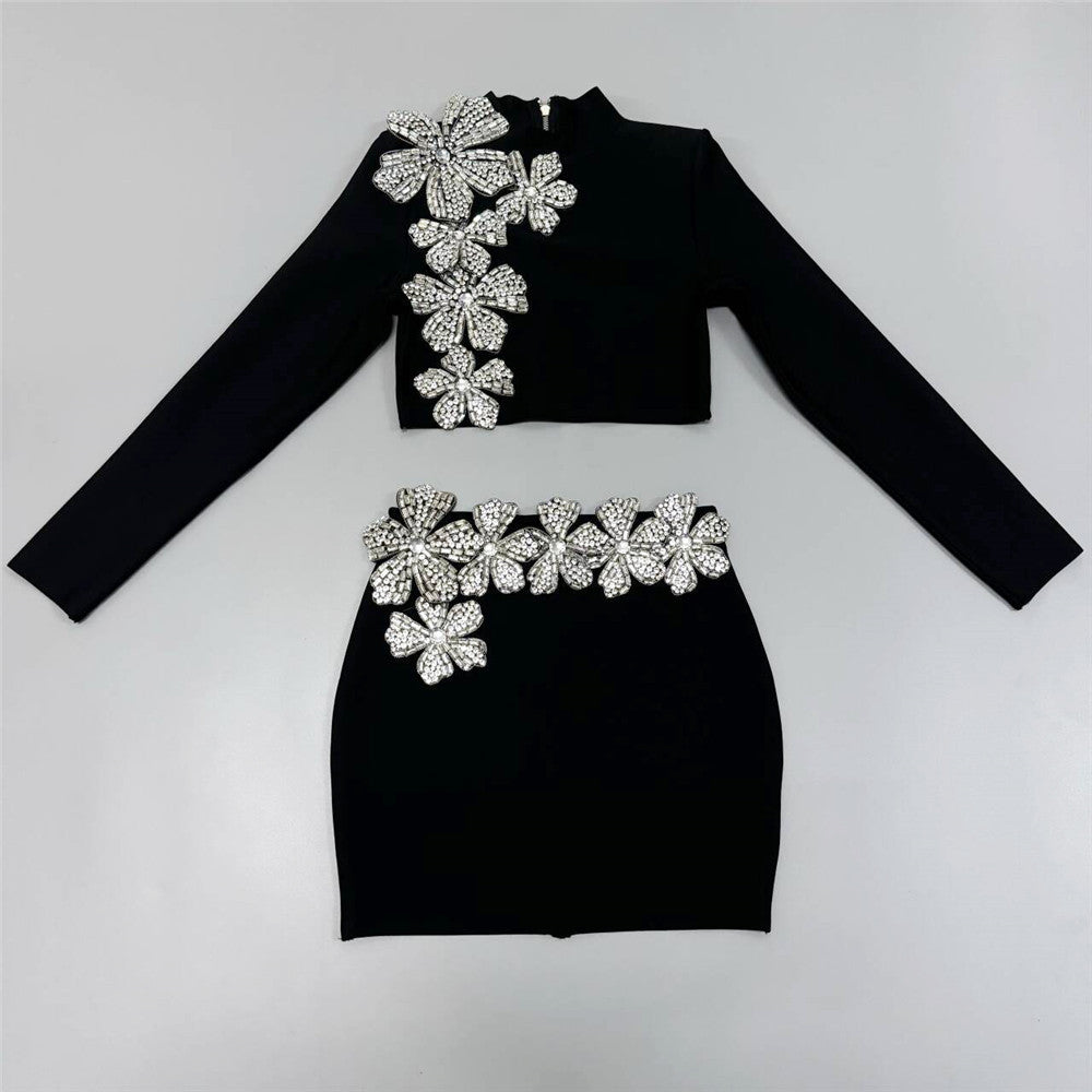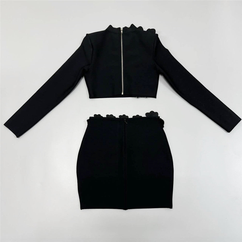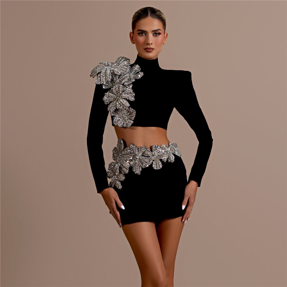 Fashion Nail Drill Bandage Set Half-High Collar Long Sleeve Top Cover Two Sets Of Women's Clothing