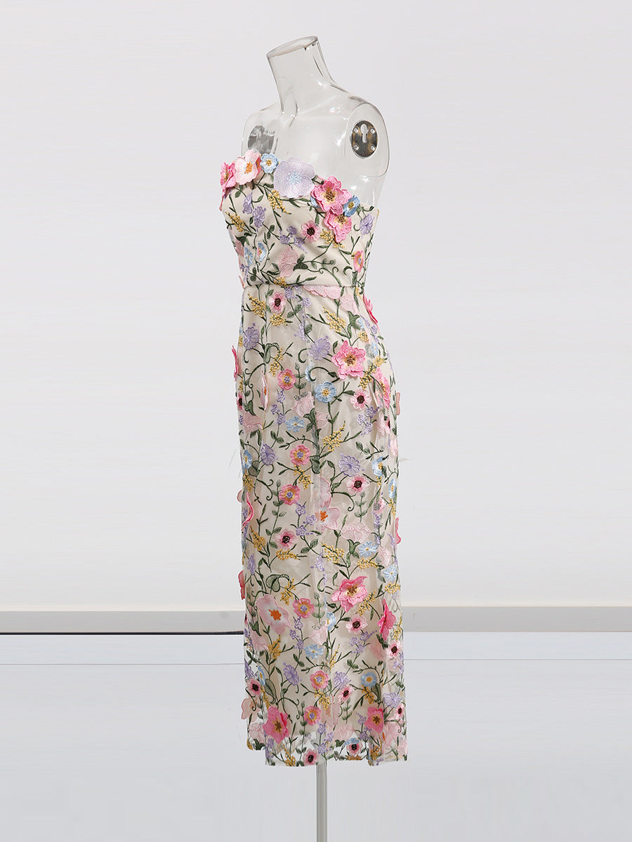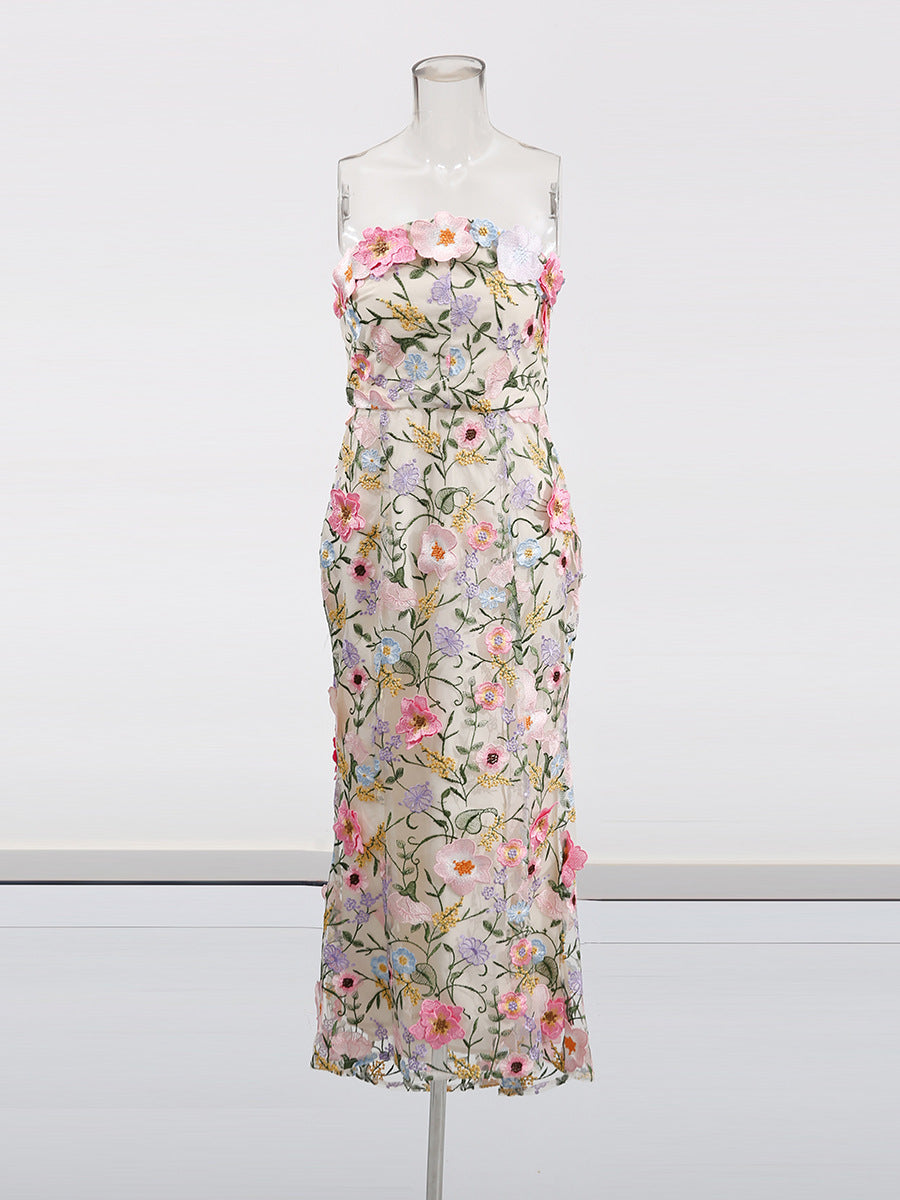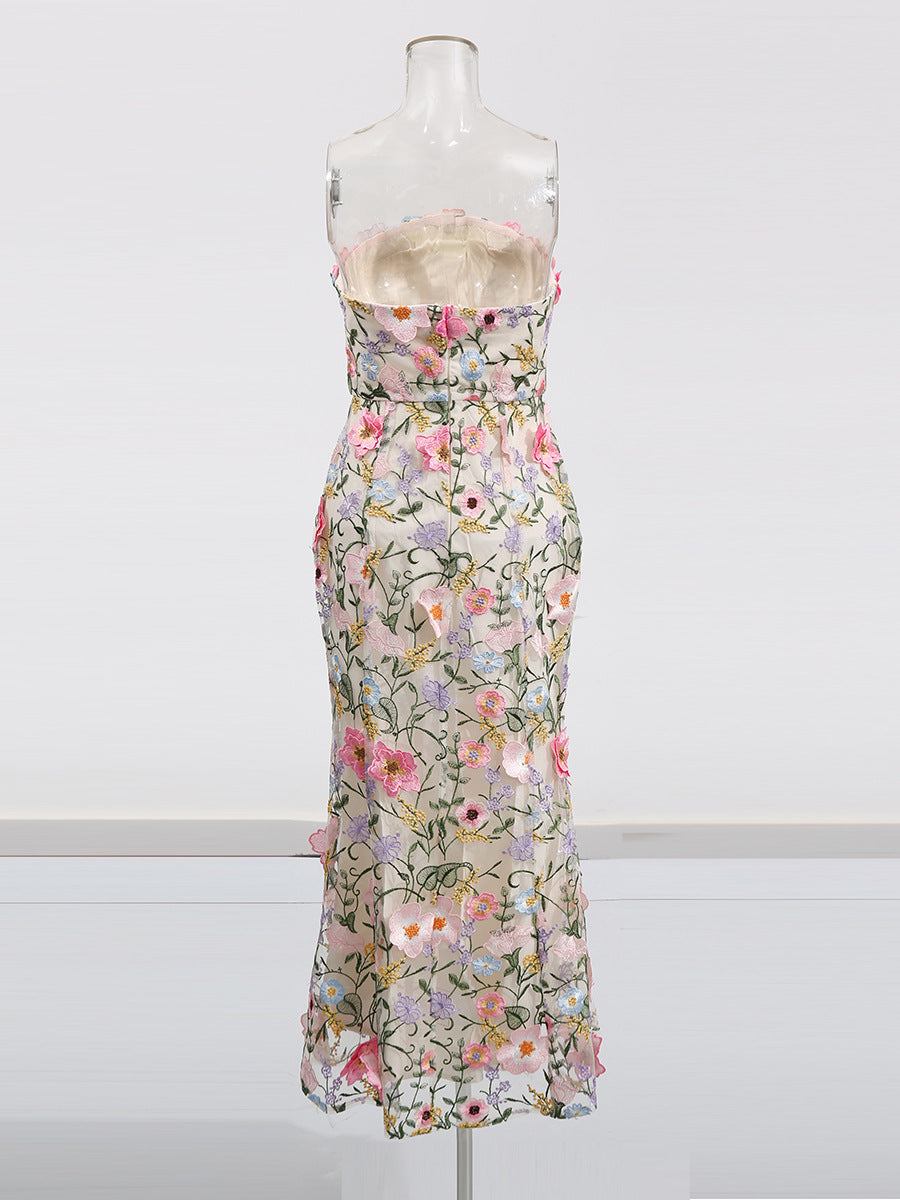 Flower-Screate High-Level Embroidered Flower Braped Fishtail Dress 2025 New Female Summer Dress