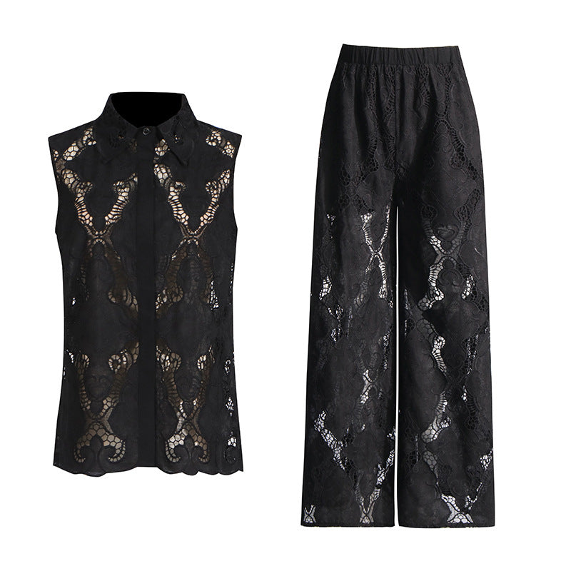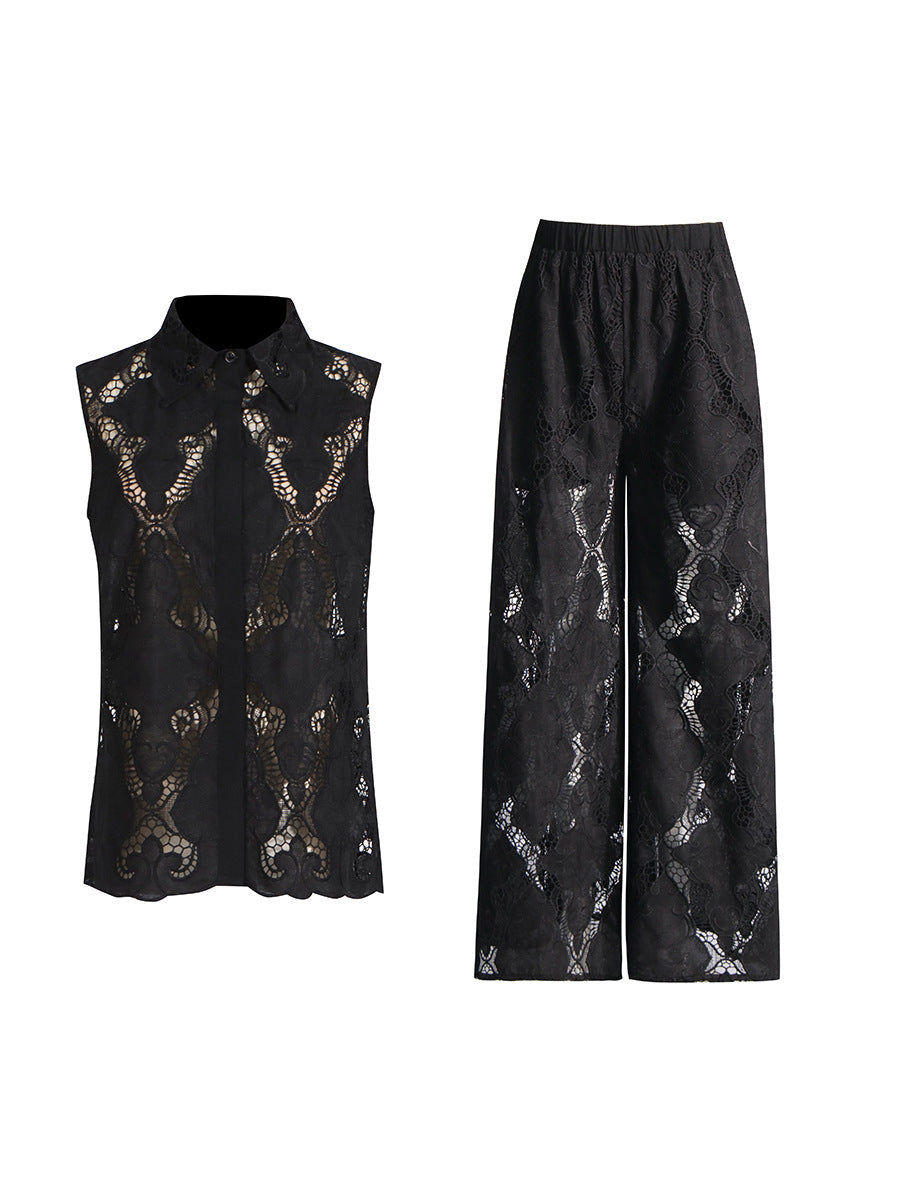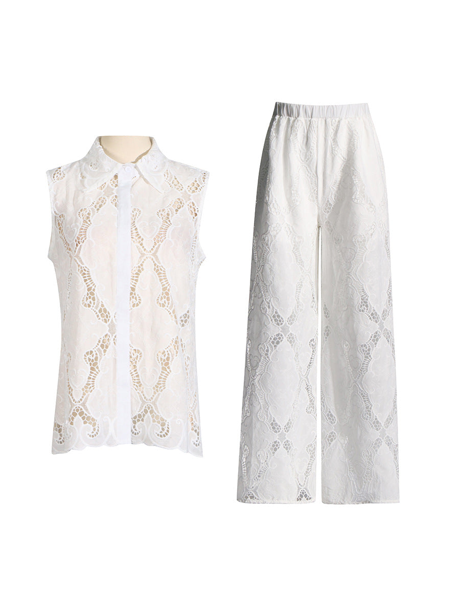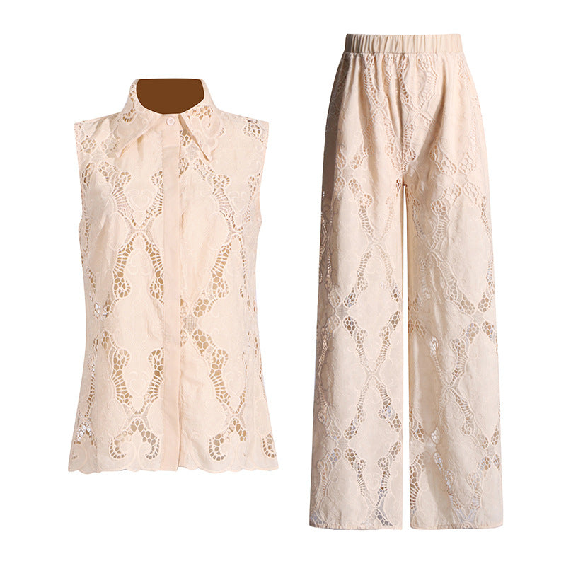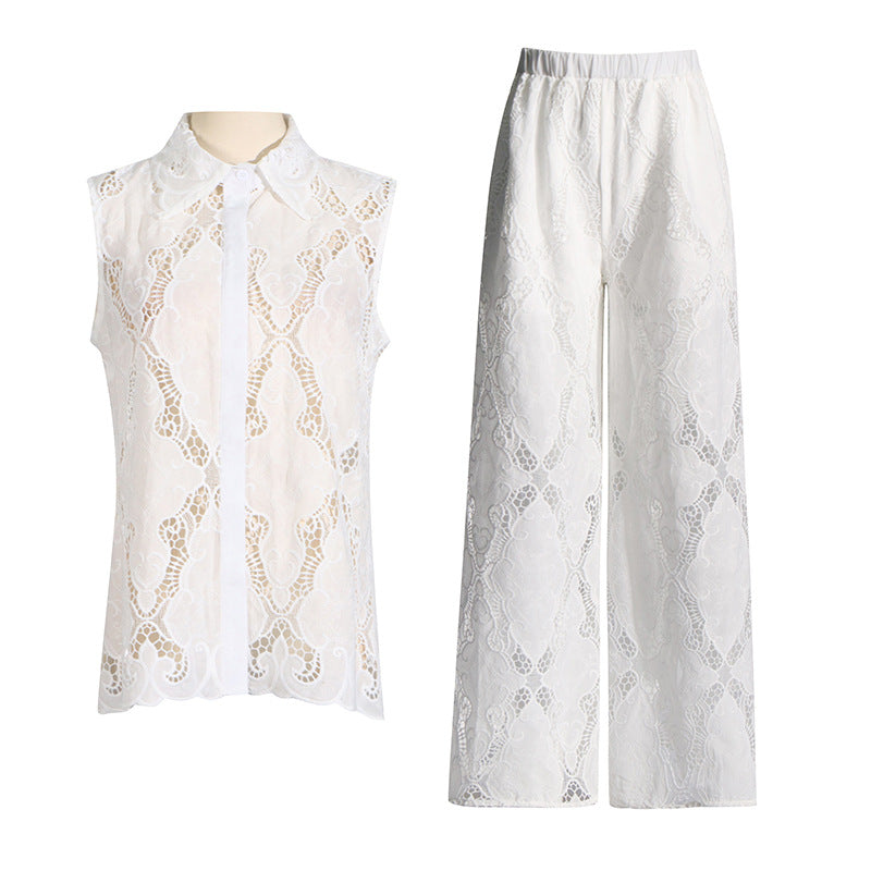 Literary And Art Casual Style Suit 2025 Spring New Collar Embroidered Sleeveless Shirt Trousers Two Sets Of Women