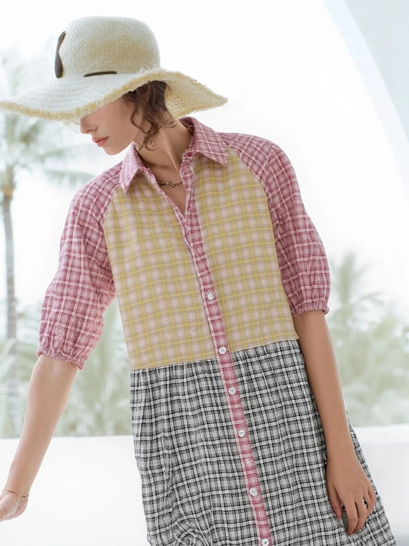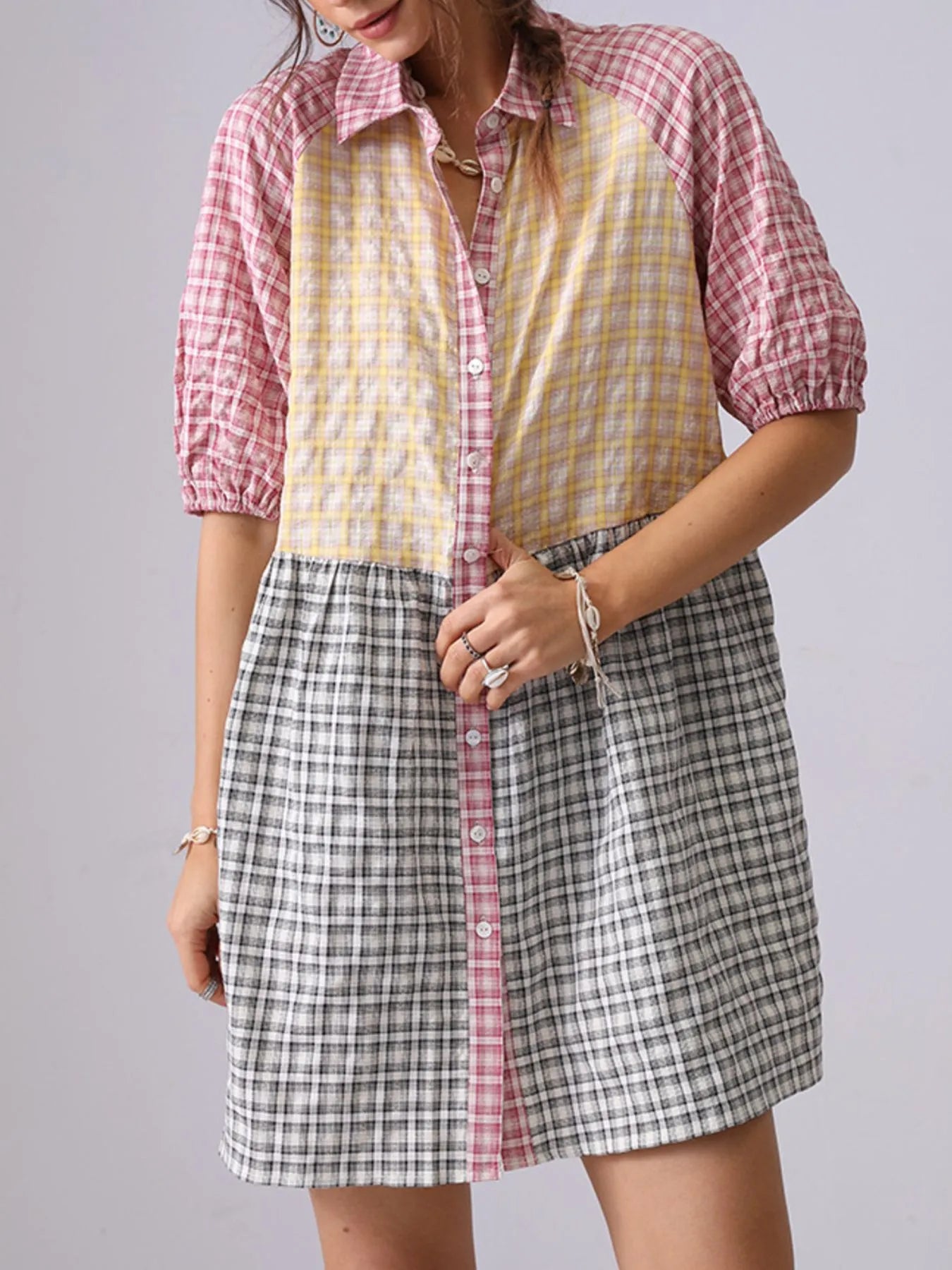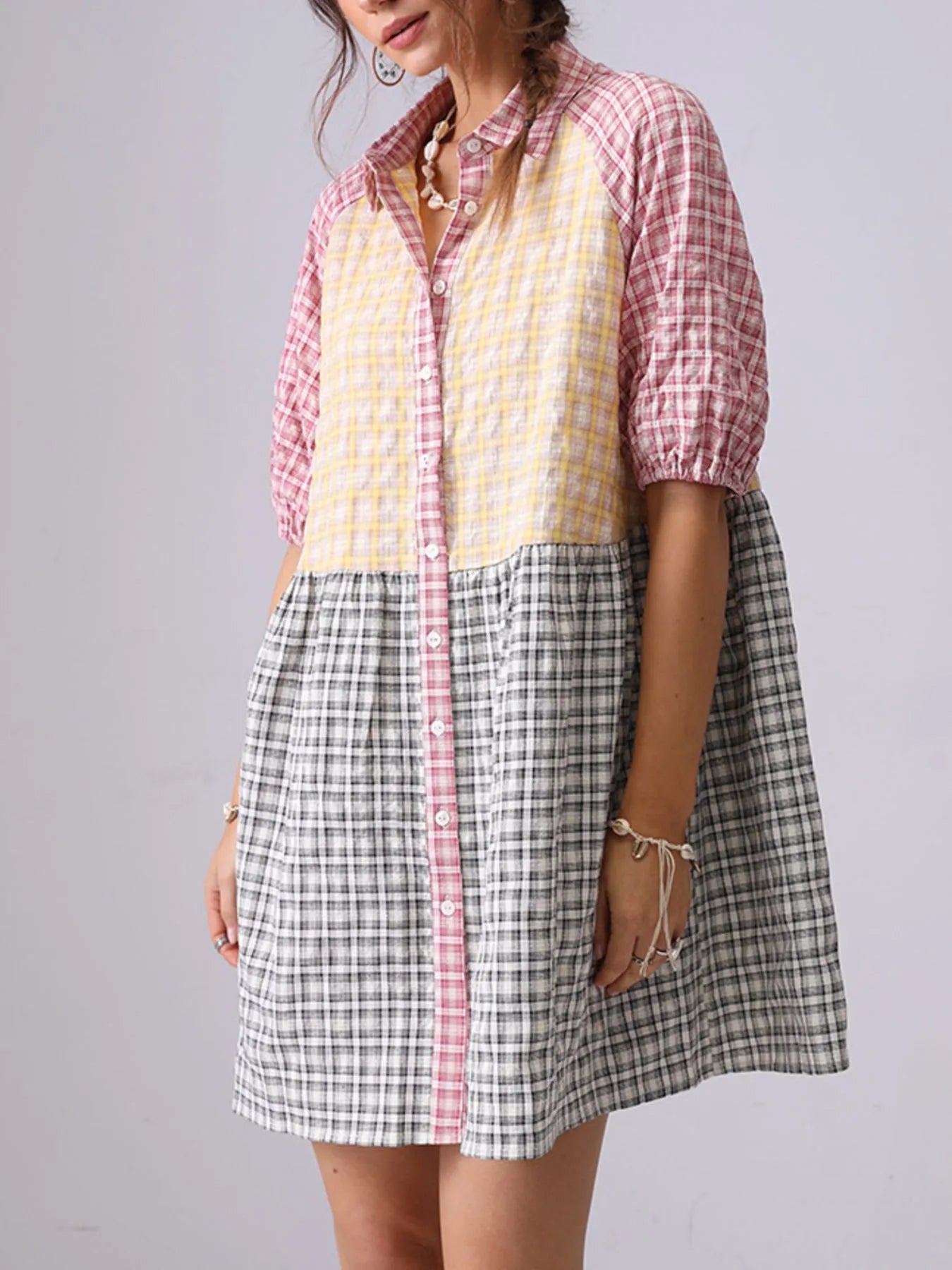 Mixed Gingham Shirt Dress DJPT