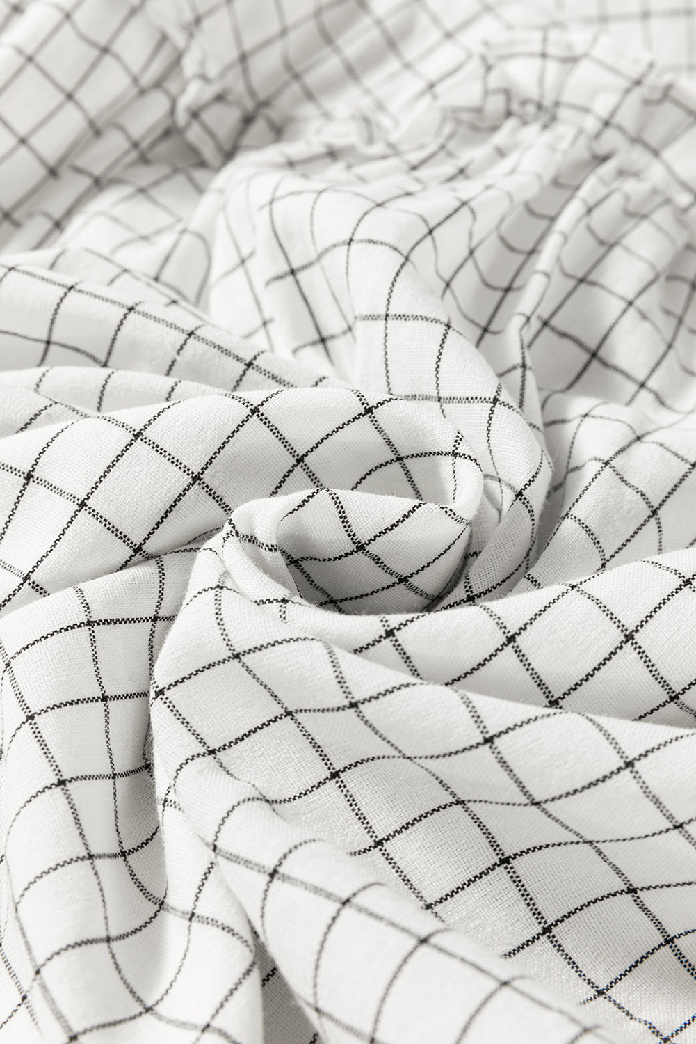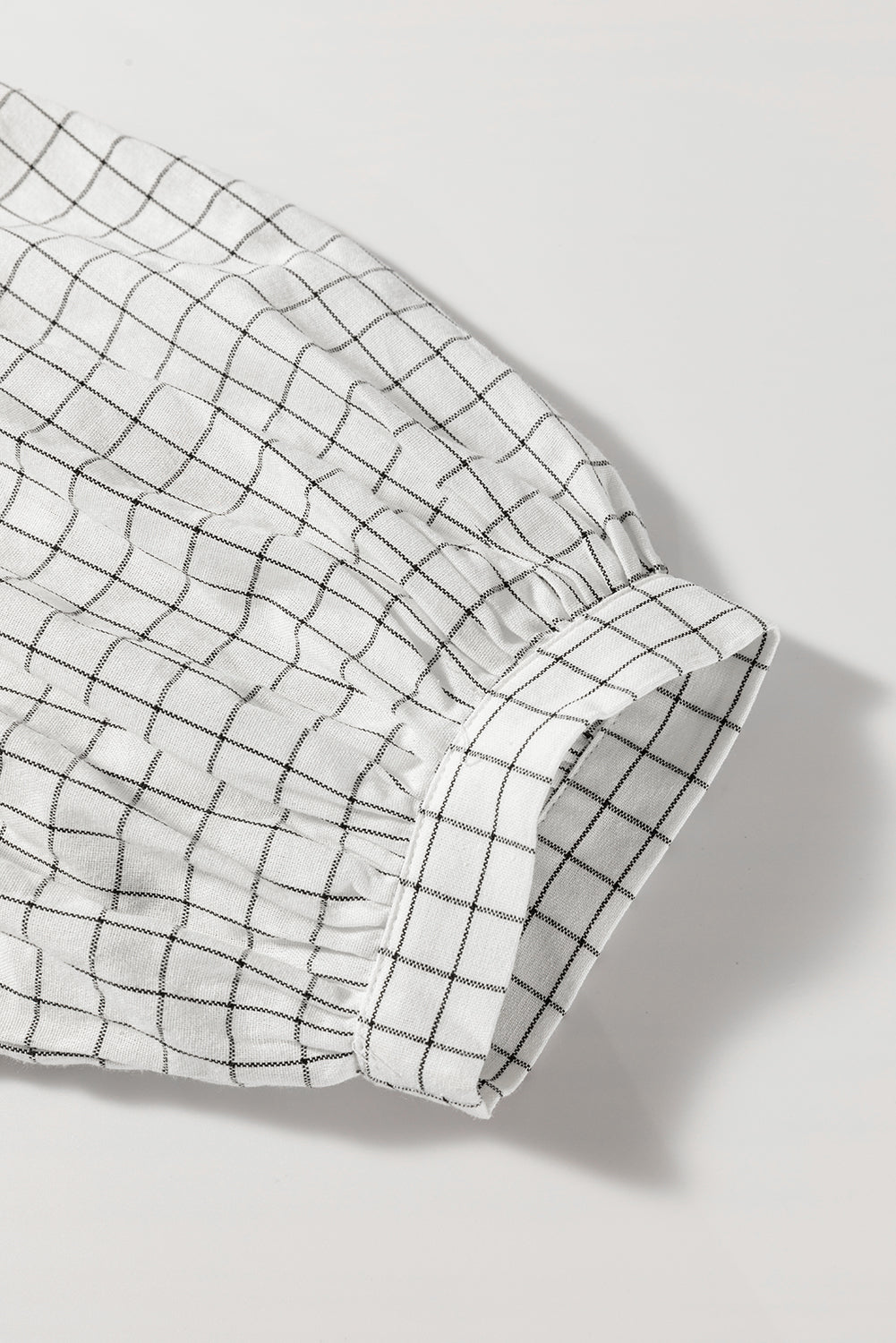 Plaid Notched Balloon Sleeve Mini Dress DJPT