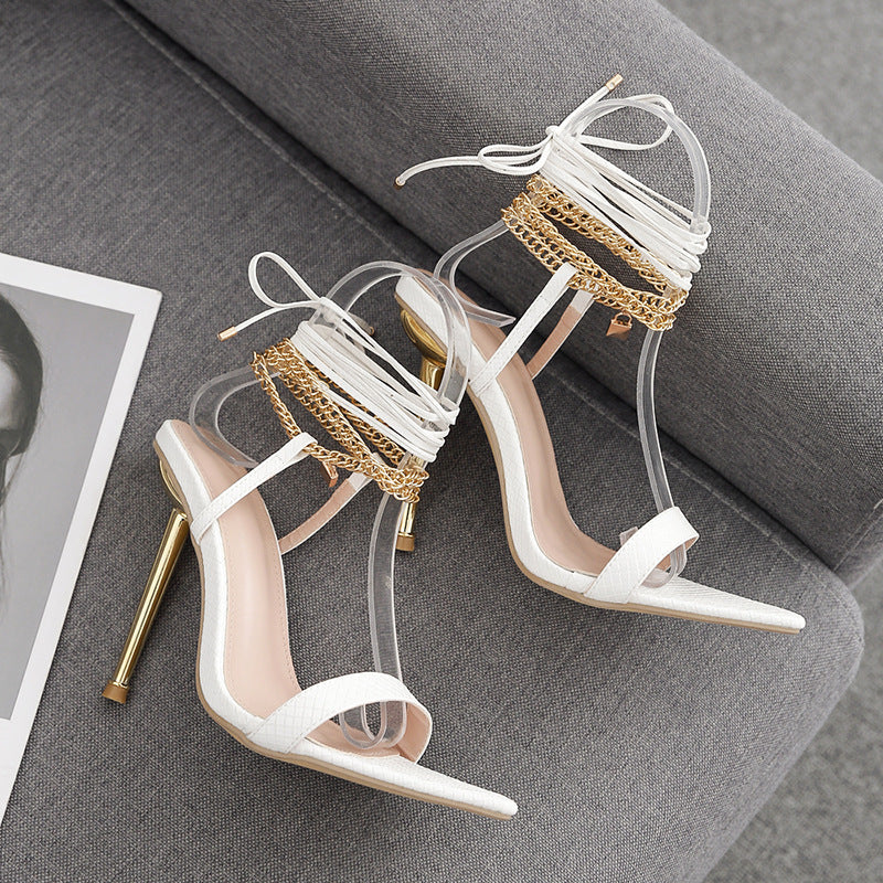 Pointed Toe Fine And Sexy Chain Tied With Roman Summer Sandals High Heels High Quality Shoes
