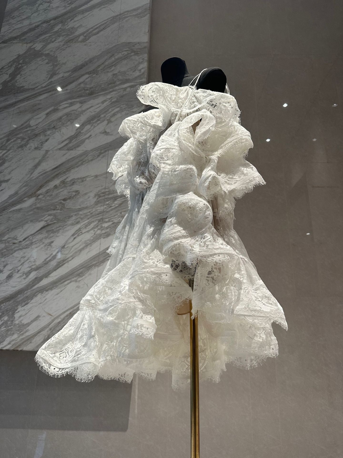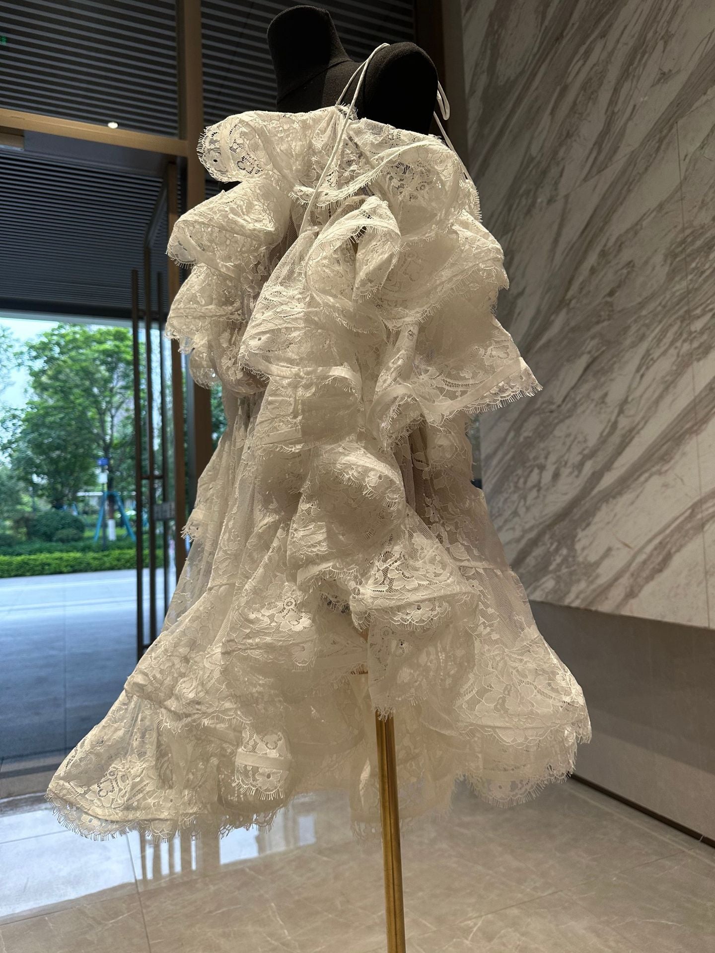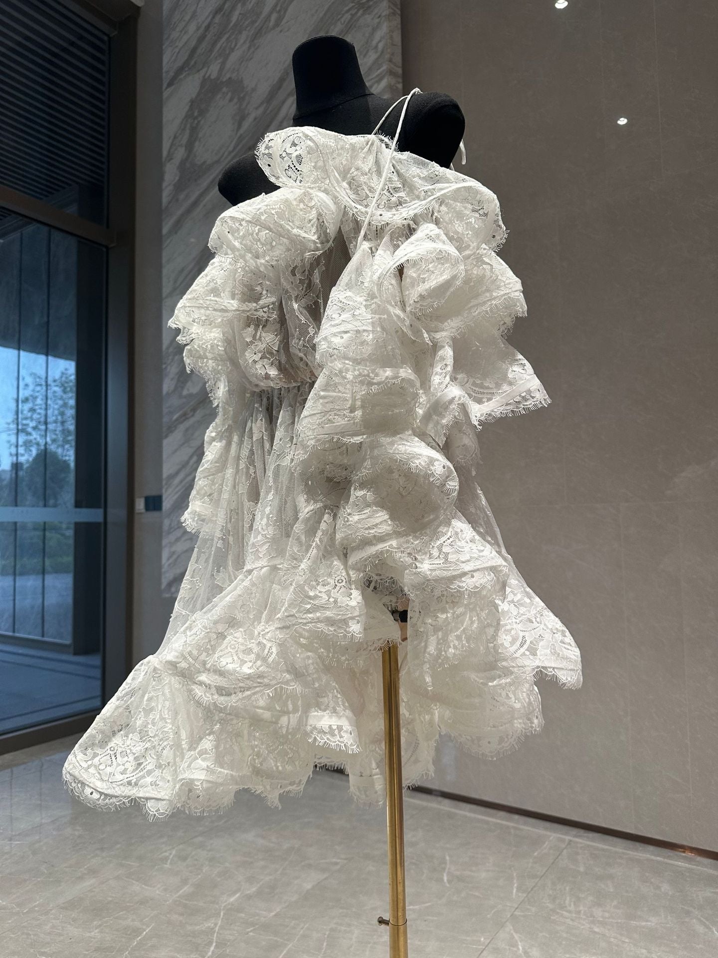 Pure Luster Breeze Through The Mesh Long Sleeve Shoulder High-Level Sense Early Spring New Unique White Ocean Dress
