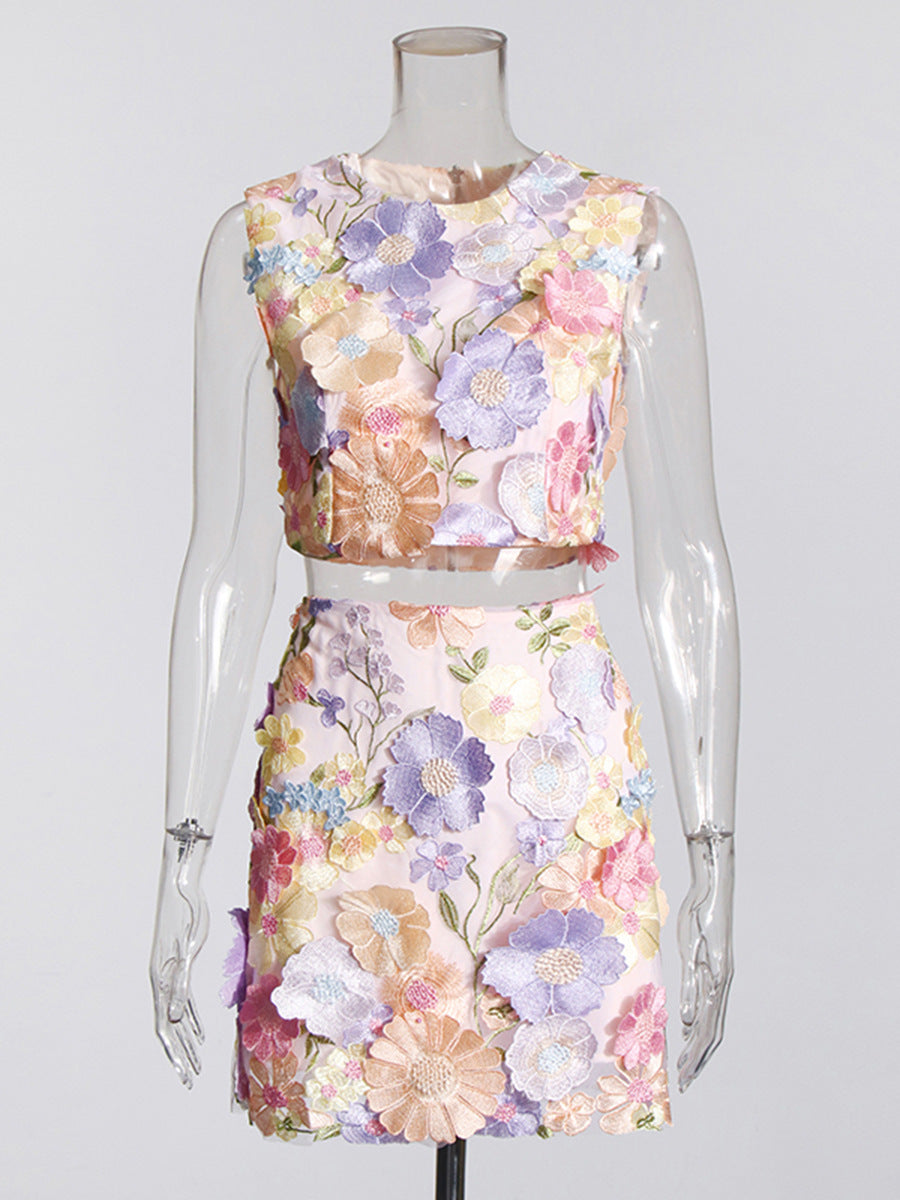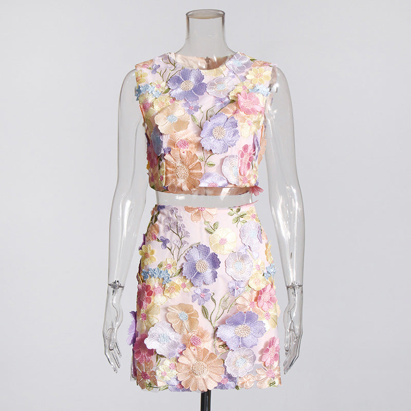 Retro Holiday Style 2025 Summer New Sleeveless Embroidery Top High-Waisted Hip Skirt Suit Woman