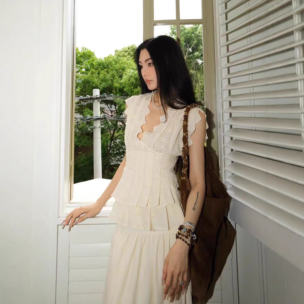 Sanguan / Summer Simple Classical Cold Fairy Lace Lace Dress Half Dress Set