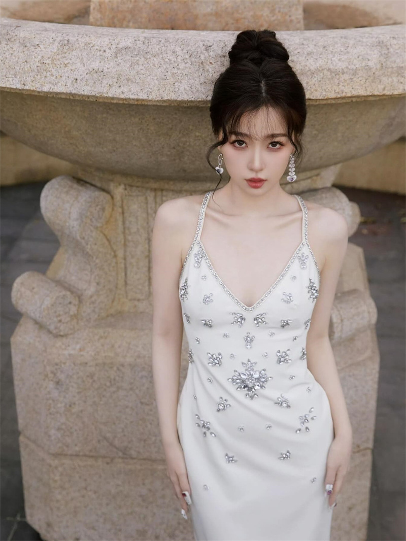 Shuxin's Design Of The Same Water-Drilled Sling Dress Female Senior Sense V-Neck Body Banquet Bag-Gown Dress Dress