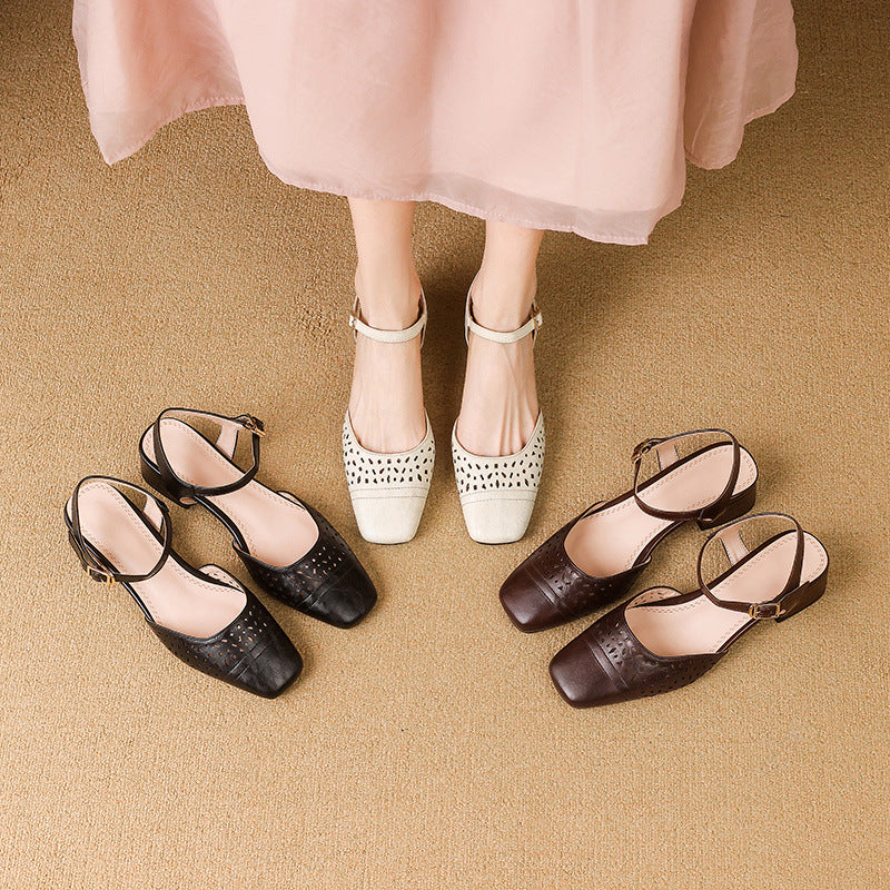 Size Women's Shoes Wrapped Head Thick Heel One-Word Sandals Women 2025 Summer New Low Heel Women's Shoes High Quality Shoes