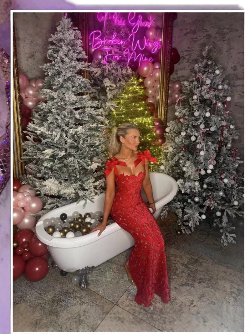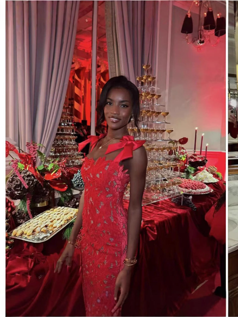 Spring And Summer Temperament Light Luxury Bow High-End Embroidery Hollow Bag Butts Long Skirt LX0119