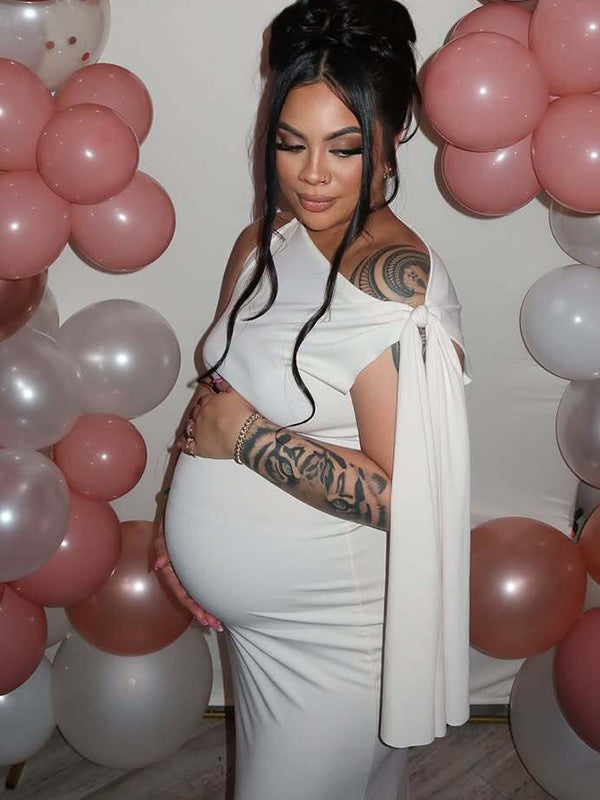 Strap Ties One Shoulder Mermaid Bodycon Elegant Photoshoot Baby Shower Maternity Maxi Dress Maternity