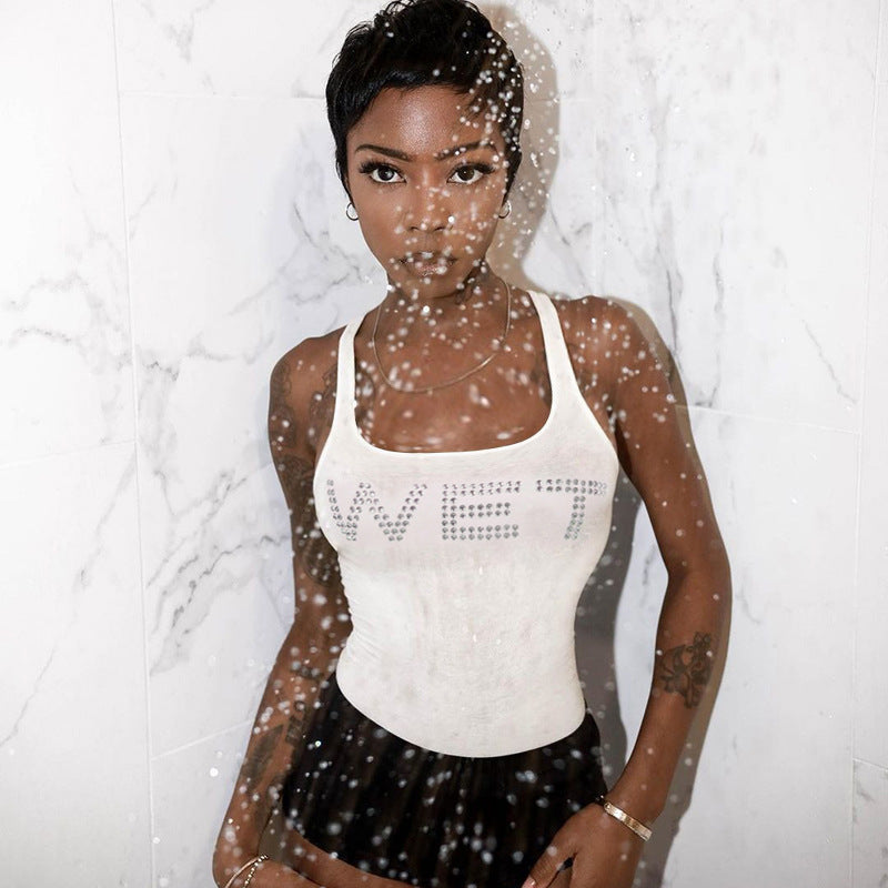 Summer 2025 New Women's Clothing Street Hot Girl Sexy Diamond Diamond Vest Top Girl DJPT