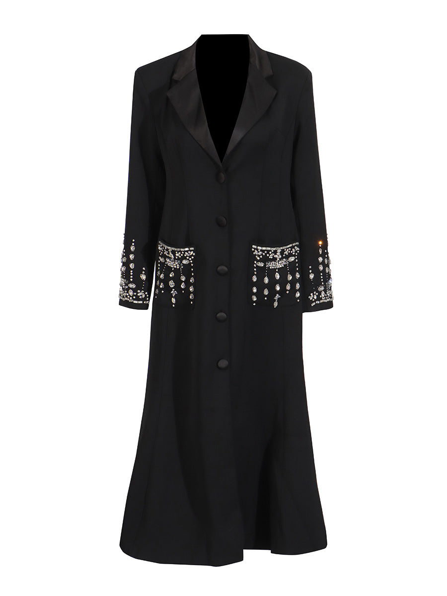 Summer Fashion New Suit Collar Heavy Industry Nails And Studs Spliced Fishtail Dress Dress Dress Woman