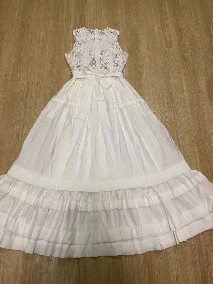 Summer Garden Round Collar Sleeveless Embroidered Hollow Lace Spliced White Fairy Dress Dress
