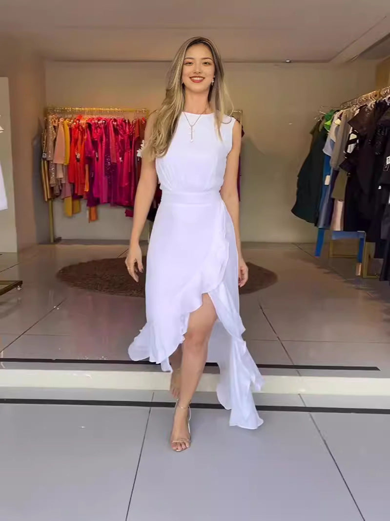 Summer New Fashion Collar Body Belt To Close The Waist Wood Ear Long Skirt